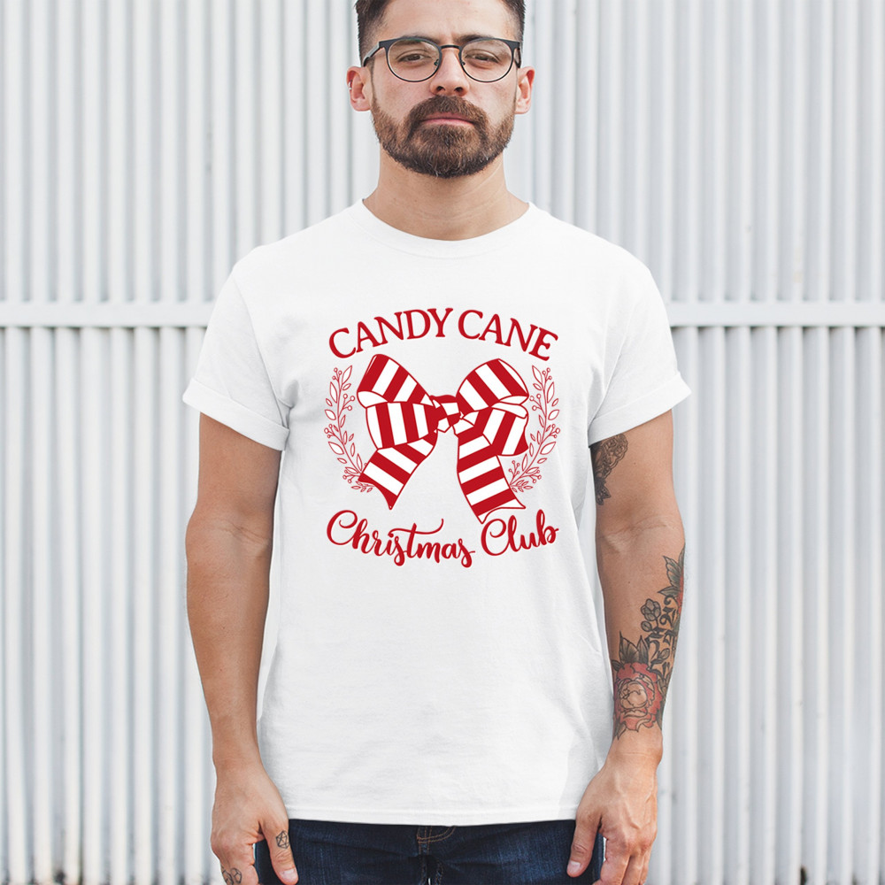 Celebrate the season with our Candy Cane Christmas Club design, crafted to spread holiday cheer with its classic red and white candy cane bow. Perfect for family gatherings, Secret Santa exchanges, or festive office parties, this charming design adds a joyful touch to any event. Ideal for matching his and hers outfits or as a cozy holiday gift, it’s a must-have for those looking to add a festive spirit. From holiday mornings to evening parties, it brings Christmas cheer to all!