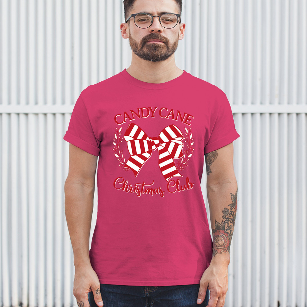 Celebrate the season with our Candy Cane Christmas Club design, crafted to spread holiday cheer with its classic red and white candy cane bow. Perfect for family gatherings, Secret Santa exchanges, or festive office parties, this charming design adds a joyful touch to any event. Ideal for matching his and hers outfits or as a cozy holiday gift, it’s a must-have for those looking to add a festive spirit. From holiday mornings to evening parties, it brings Christmas cheer to all!