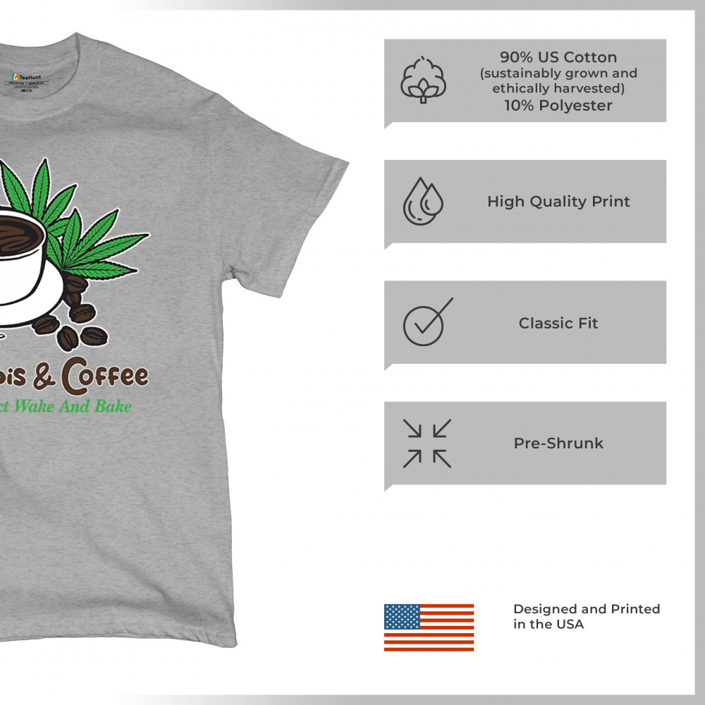A chill cannabis and coffee design with cup, joints, and beans. Great for wake-and-bake fans, mellow mornings, and herb-fueled coffee lovers.