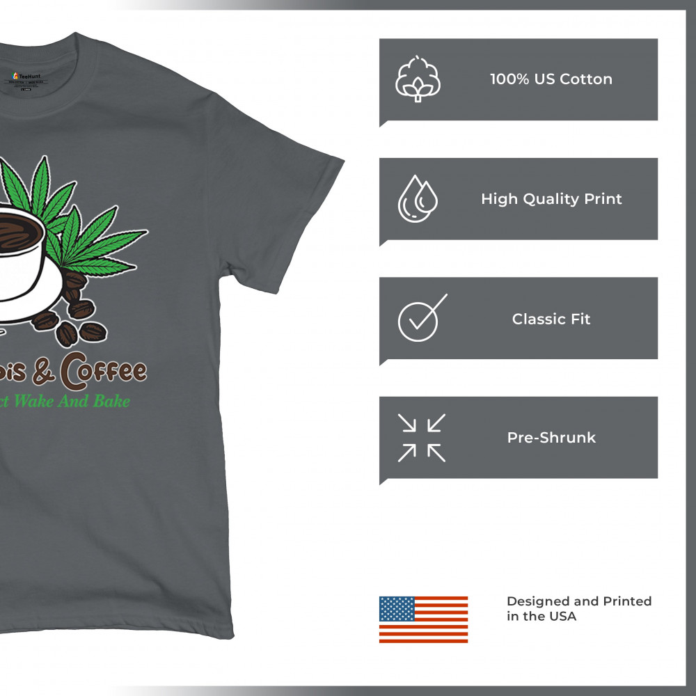 A chill cannabis and coffee design with cup, joints, and beans. Great for wake-and-bake fans, mellow mornings, and herb-fueled coffee lovers.