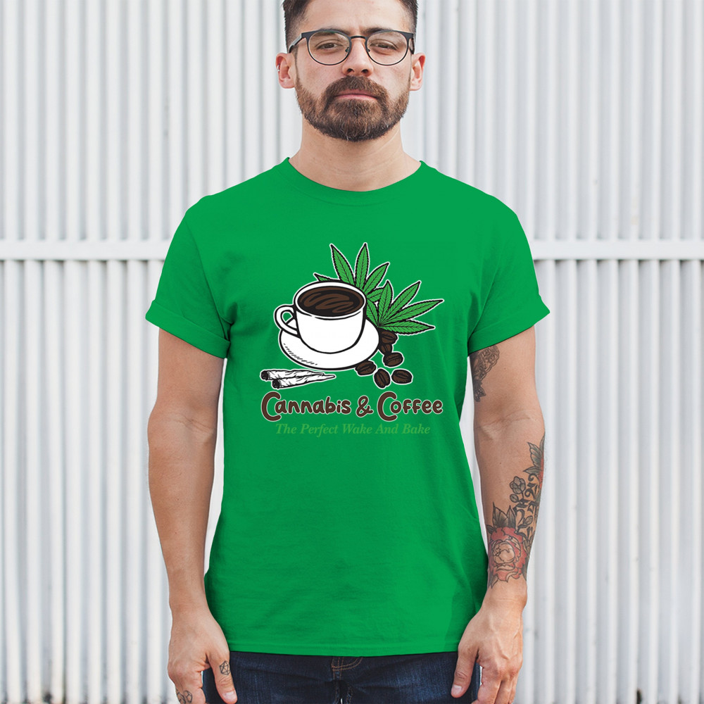 A chill cannabis and coffee design with cup, joints, and beans. Great for wake-and-bake fans, mellow mornings, and herb-fueled coffee lovers.