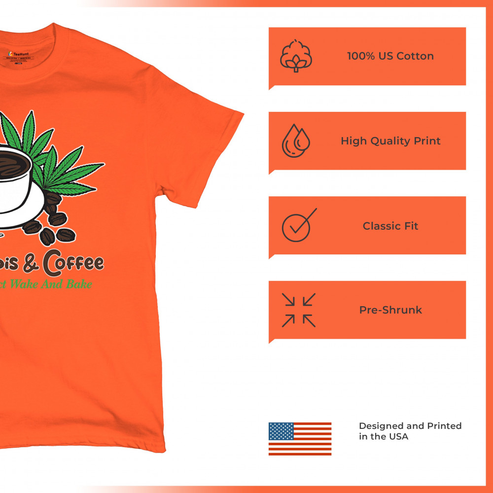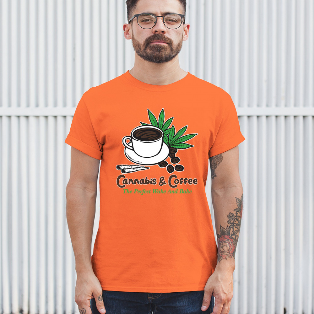 A chill cannabis and coffee design with cup, joints, and beans. Great for wake-and-bake fans, mellow mornings, and herb-fueled coffee lovers.