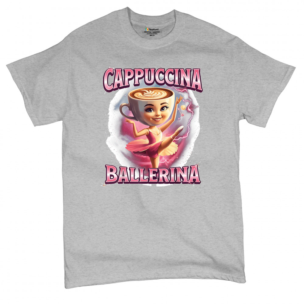 Cappuccina Ballerina is your perfect mix of meme chaos and coffee-core fashion. This absurd design features a ballet-dancing cappuccino head with weirdcore flair and Gen Z humor. A surreal blend of ironic internet fashion, TikTok trends, and espresso madness—ideal for meme lovers, caffeine addicts, and viral absurdists alike.