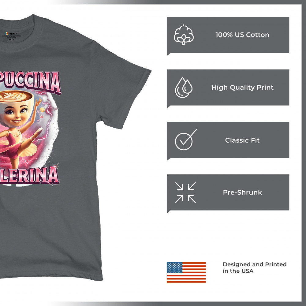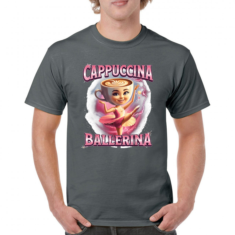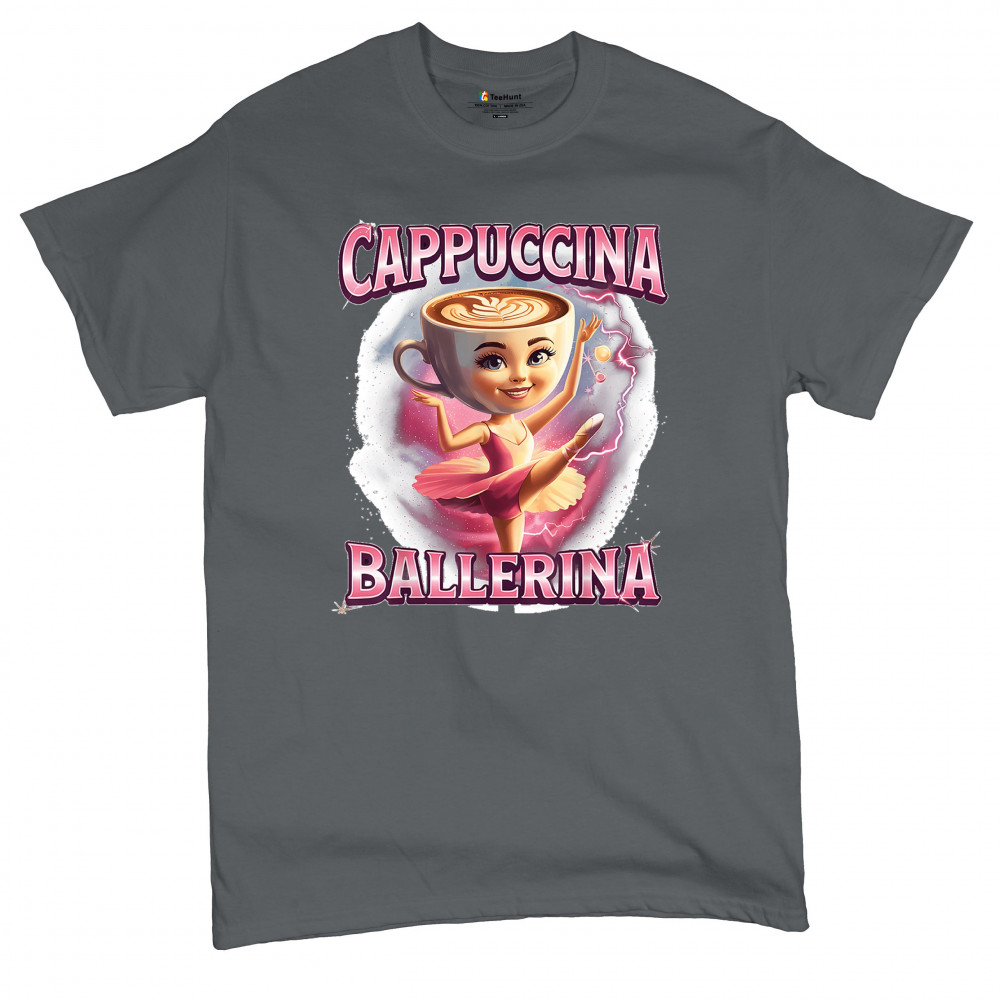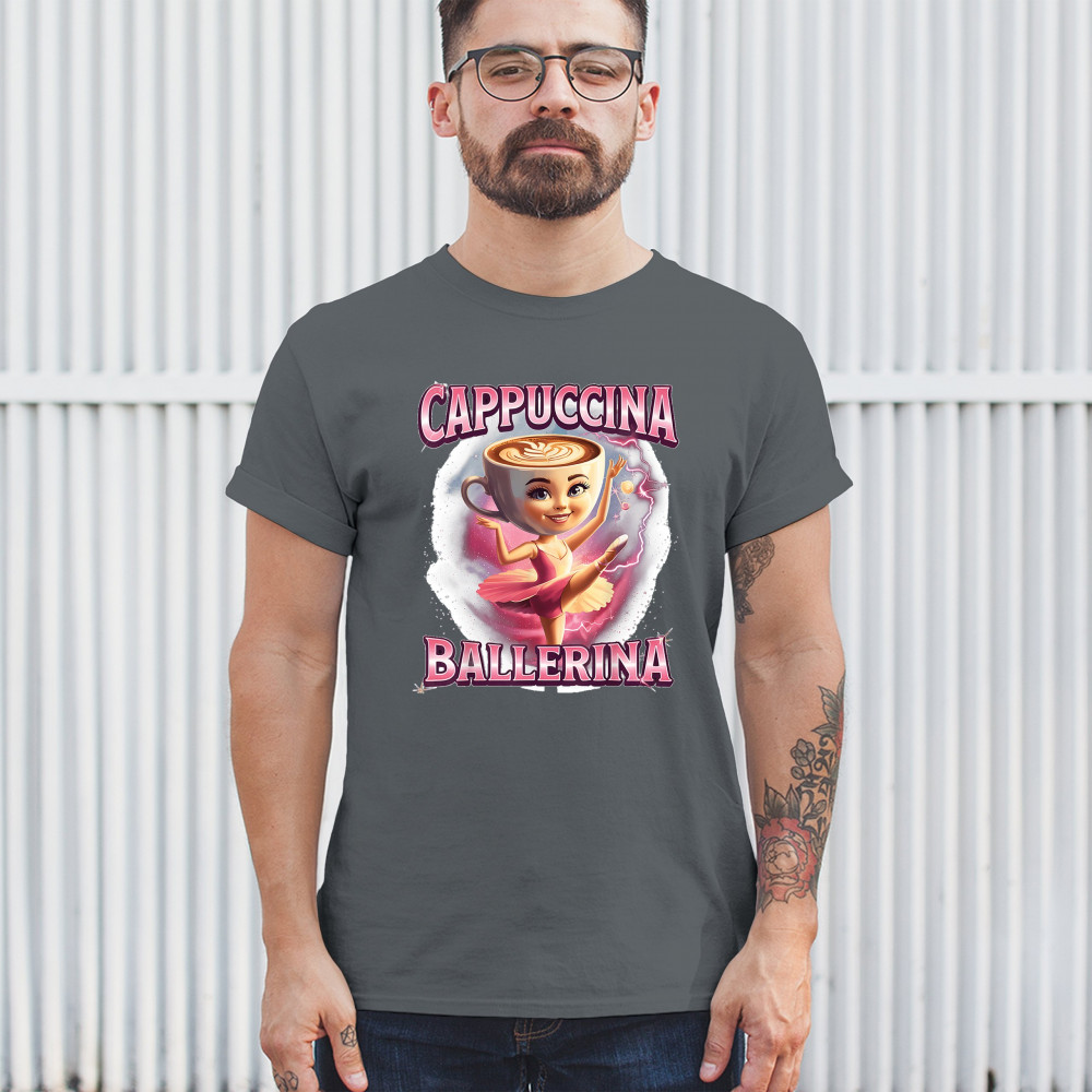 Cappuccina Ballerina is your perfect mix of meme chaos and coffee-core fashion. This absurd design features a ballet-dancing cappuccino head with weirdcore flair and Gen Z humor. A surreal blend of ironic internet fashion, TikTok trends, and espresso madness—ideal for meme lovers, caffeine addicts, and viral absurdists alike.