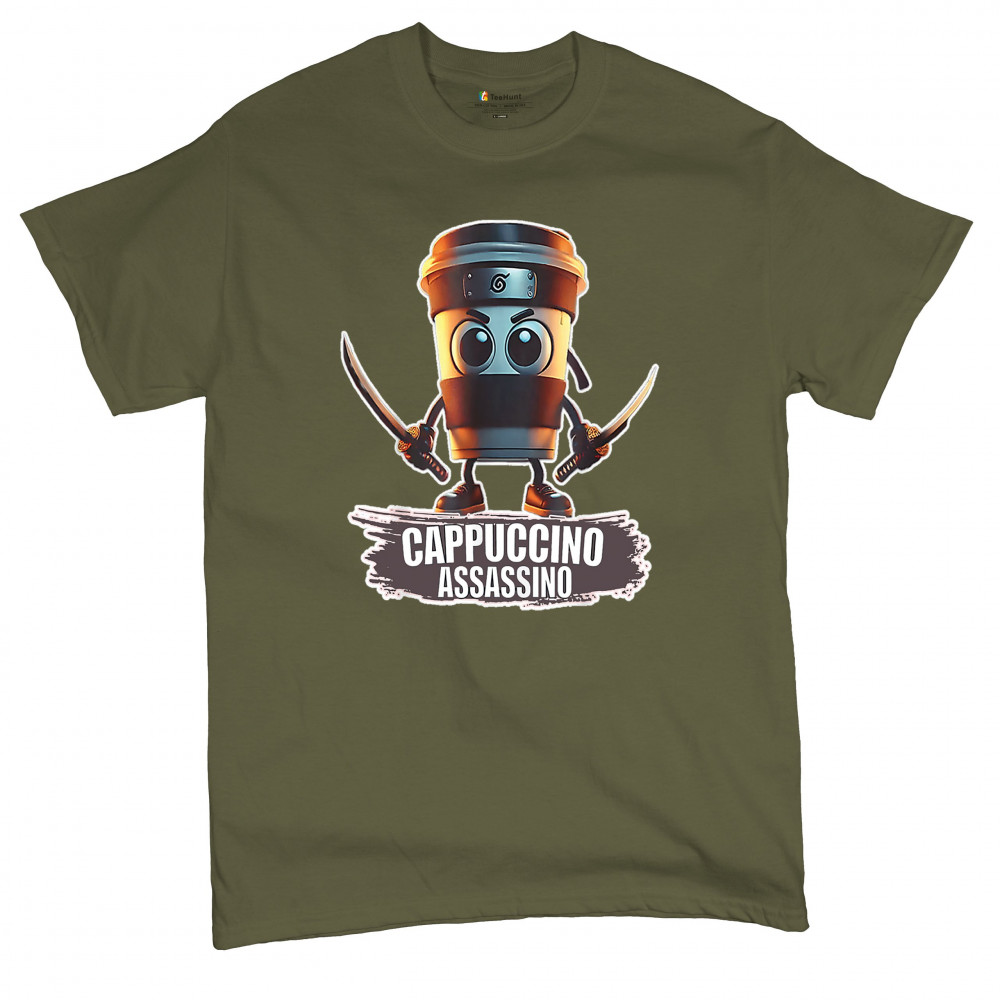 Cappuccino Assassino fuses cursed coffee memes, ninja chaos, ironic TikTok fashion, espresso humor, and Gen Z internet absurdity.