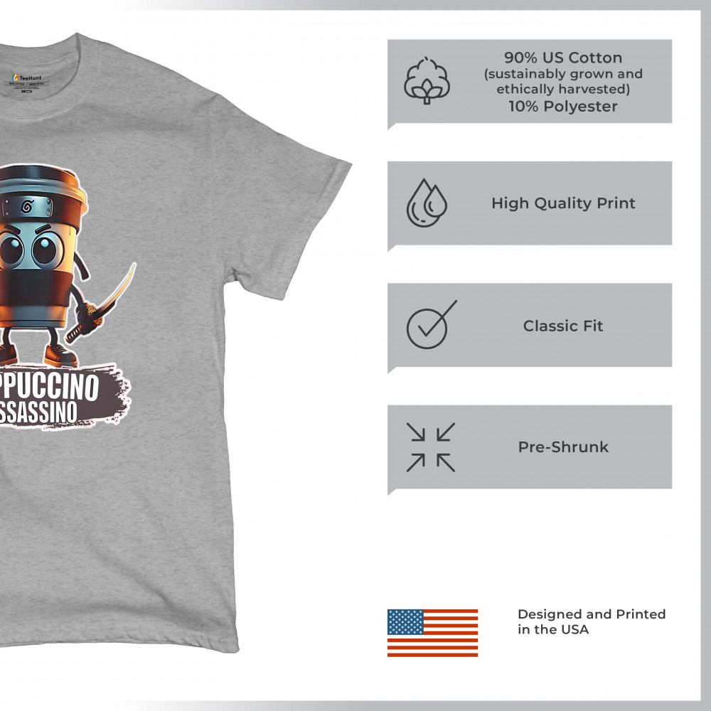 Cappuccino Assassino is brewed for chaos. Featuring an espresso cup ninja with blades and brainrot vibes, this design blends cursed-core humor, surreal coffee memes, and TikTok-driven absurdity. Built for caffeine freaks, meme lovers, and Gen Z fans of ironic, unhinged style. Sip rage, wear nonsense.