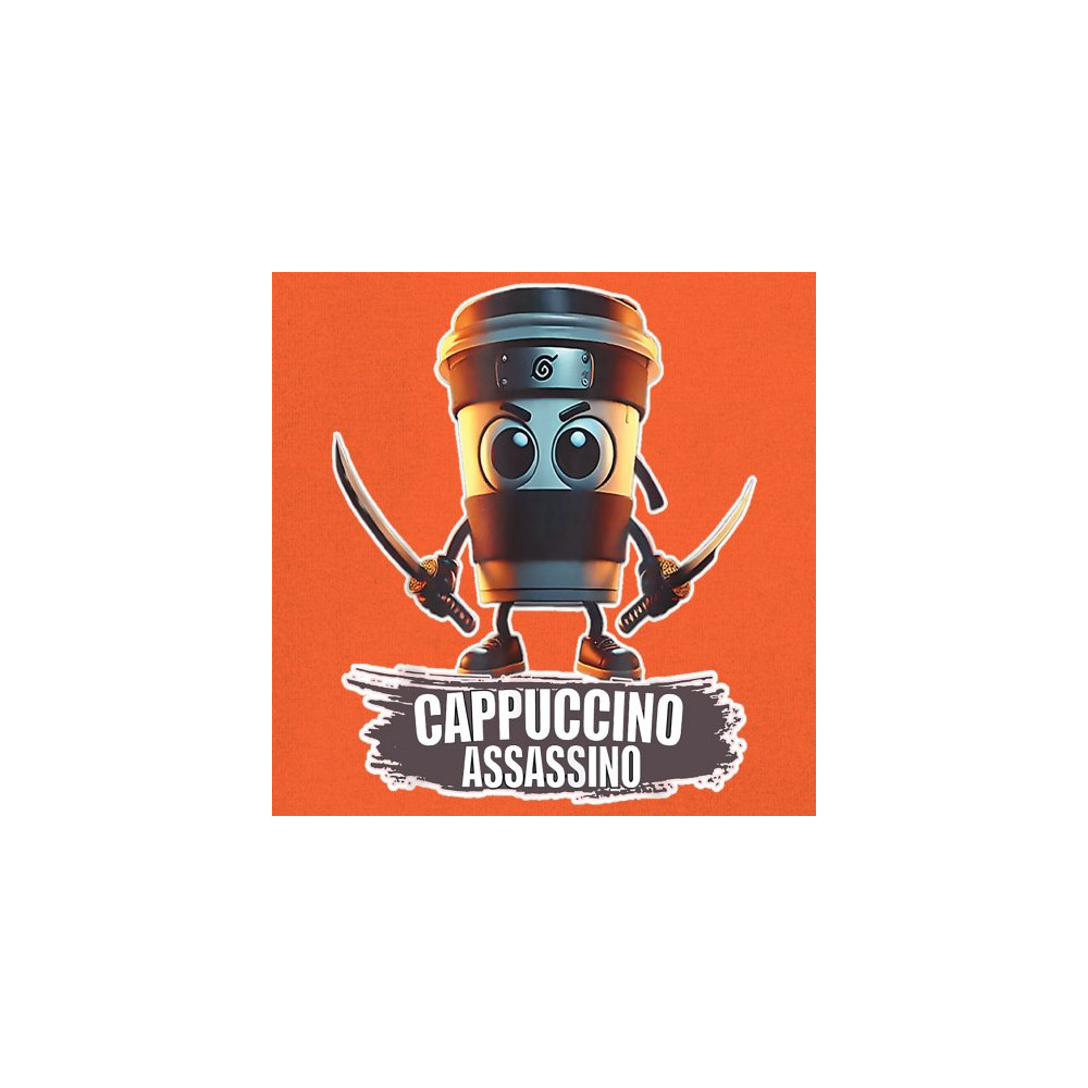 Cappuccino Assassino fuses cursed coffee memes, ninja chaos, ironic TikTok fashion, espresso humor, and Gen Z internet absurdity.