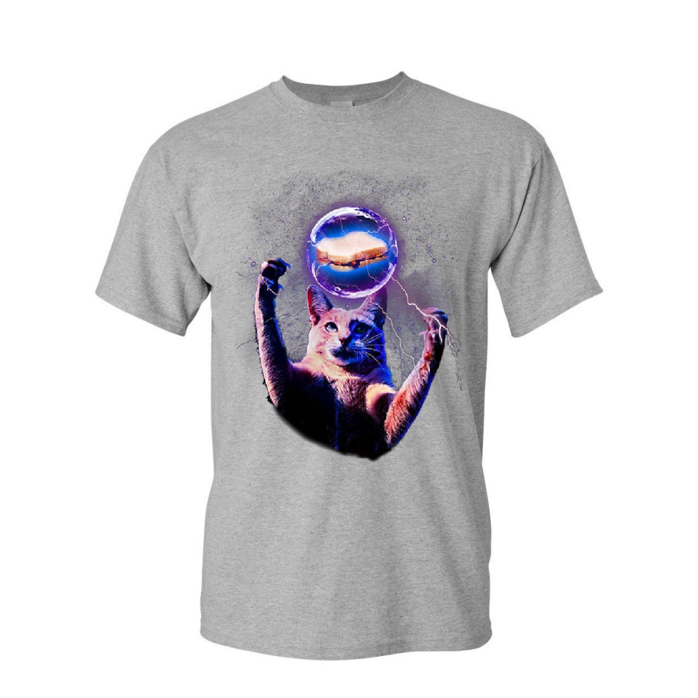 CAT CATCHING A PB&J cat catching a sandwich t-shirt plasma ball kitty kitten weird mens tee shirt sport gray