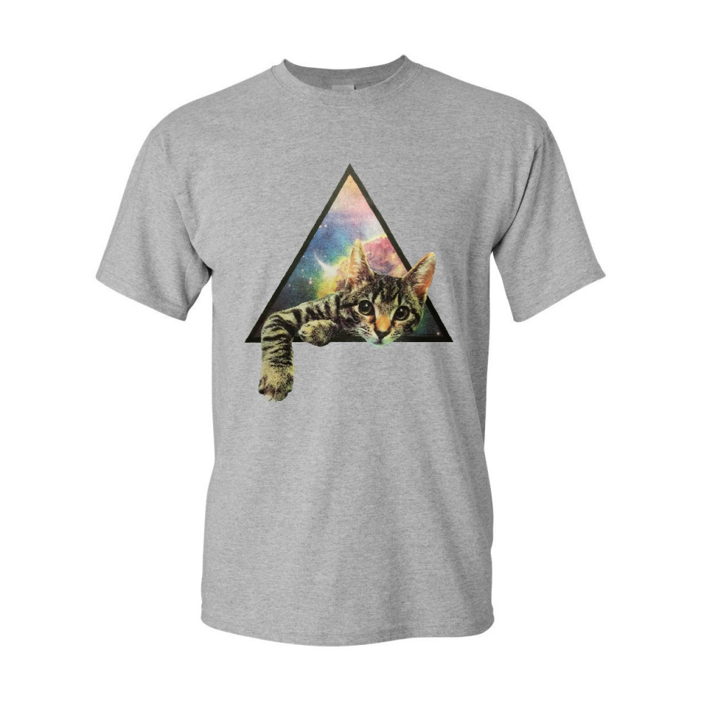 GALAXY CAT t-shirt cute kitten pet universe cotton tee sport gray