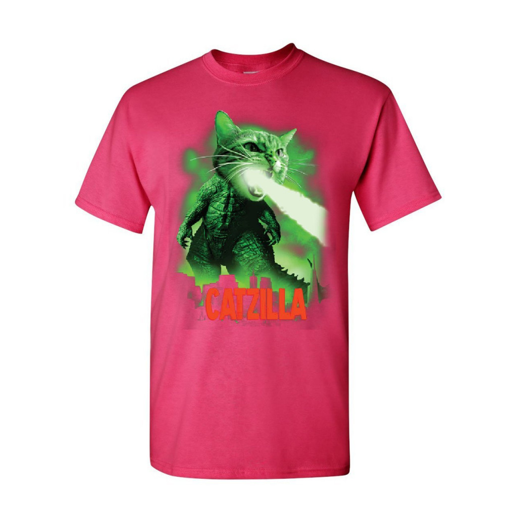 CATZILLA FUNNY PARODY t-shirt cat kitten pet atomic breath mens tee shirt hot pink