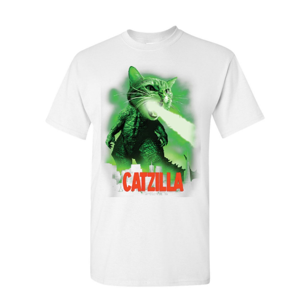 CATZILLA FUNNY PARODY t-shirt cat kitten pet atomic breath mens tee shirt white