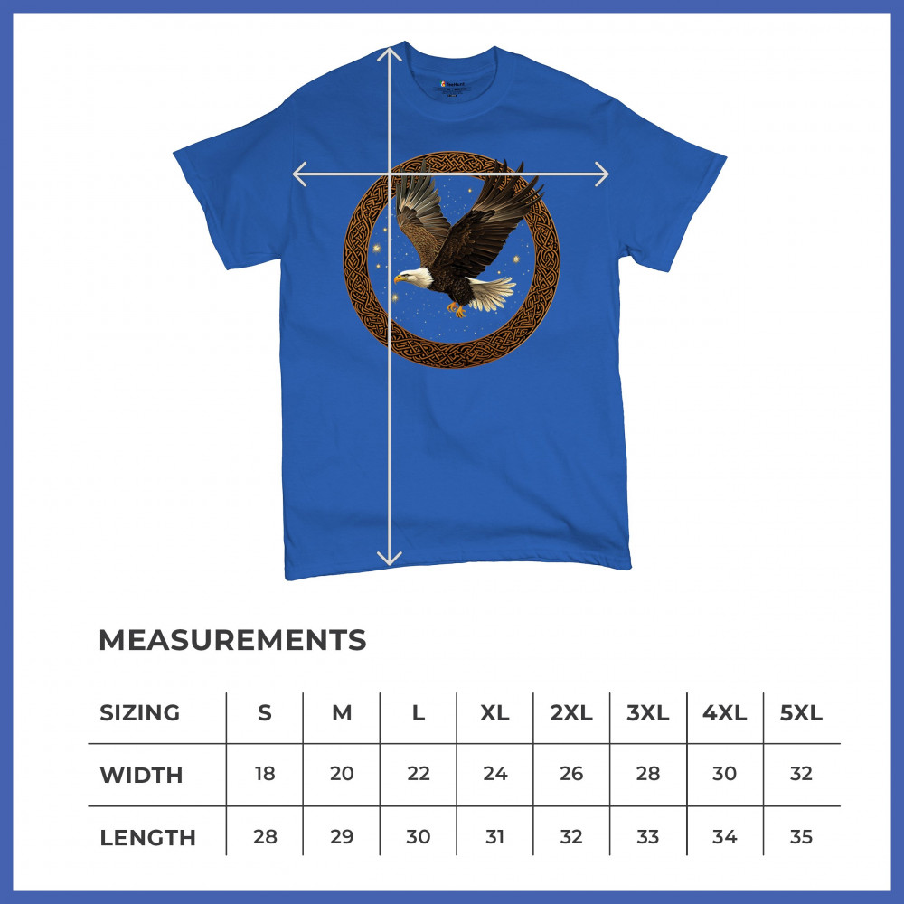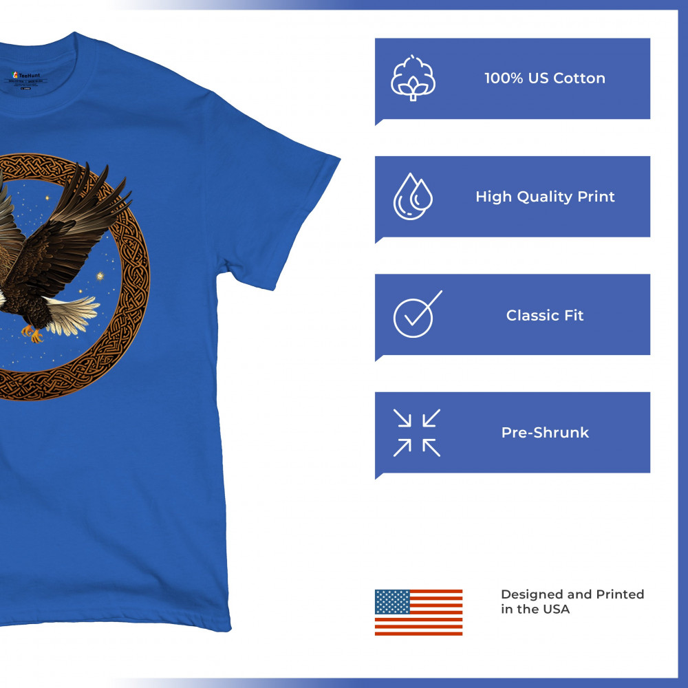 This powerful bald eagle takes flight within a Celtic knotwork circle, radiating strength, independence, and cosmic energy. The glowing stars and celestial background add mystic symbolism, blending nature, tribal design, and spirituality. Perfect for patriots, spiritual seekers, and bird enthusiasts.