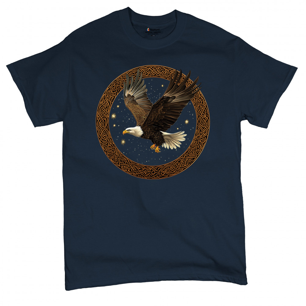 Bald eagle flying in Celtic circle with stars. A bold symbol of freedom, spiritual power, and protection—perfect for patriots and seekers.
