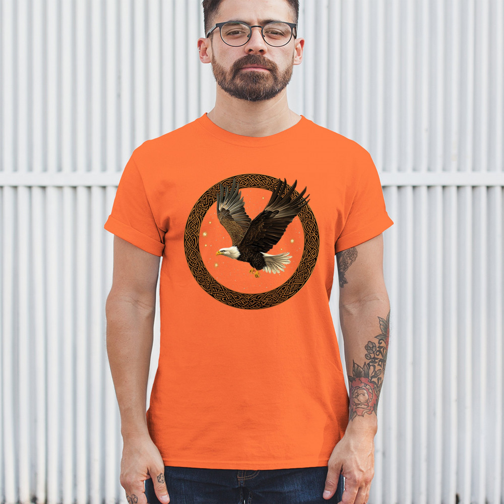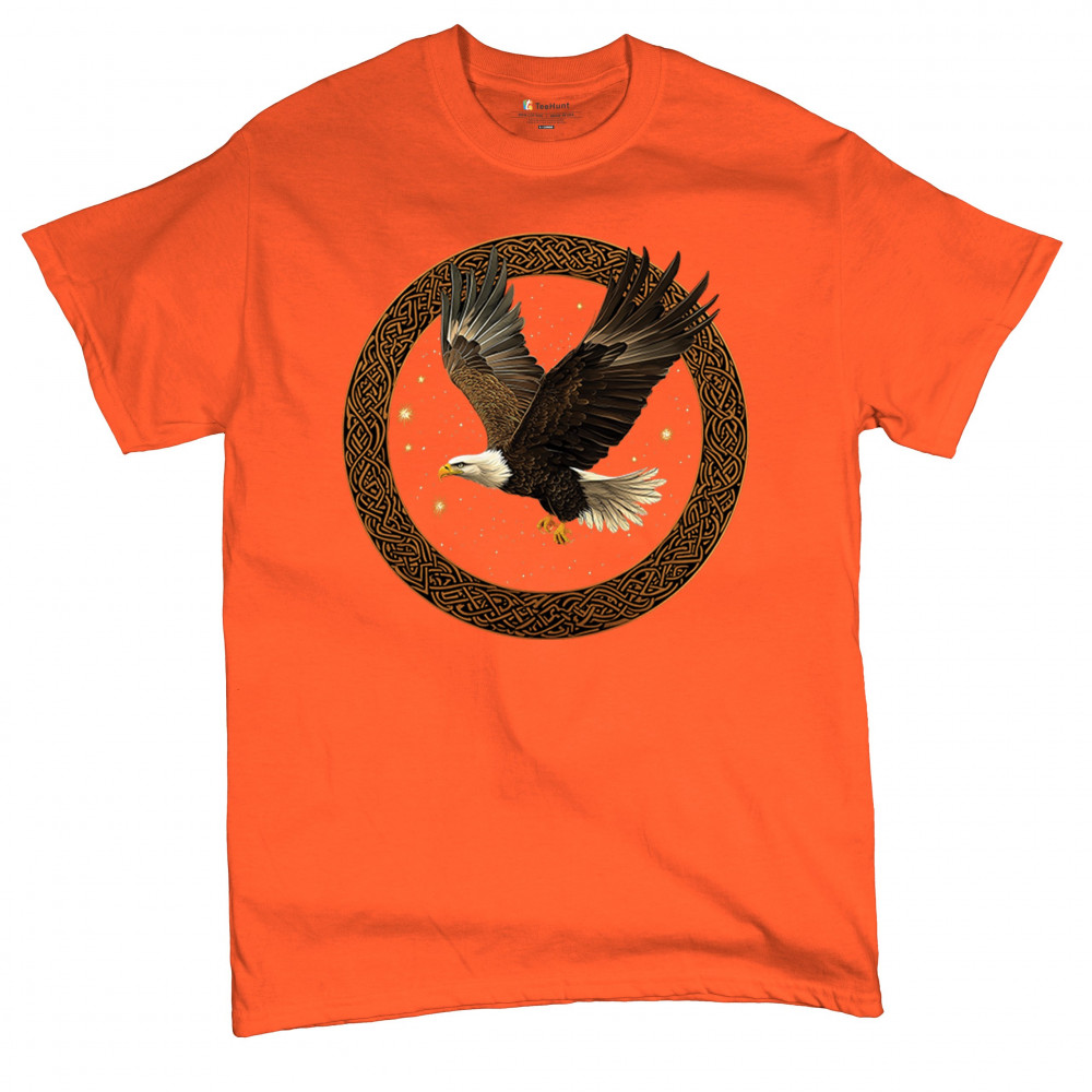This powerful bald eagle takes flight within a Celtic knotwork circle, radiating strength, independence, and cosmic energy. The glowing stars and celestial background add mystic symbolism, blending nature, tribal design, and spirituality. Perfect for patriots, spiritual seekers, and bird enthusiasts.