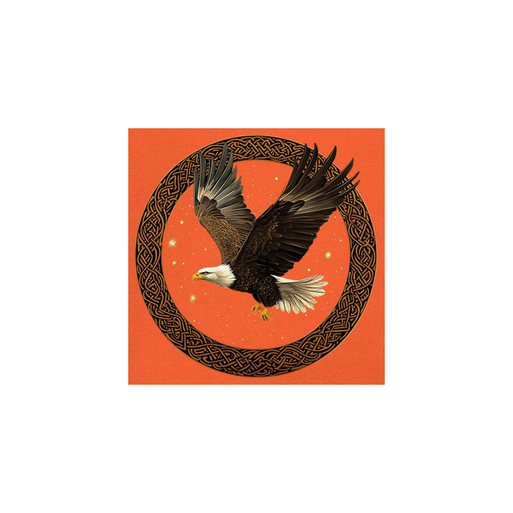 Bald eagle flying in Celtic circle with stars. A bold symbol of freedom, spiritual power, and protection—perfect for patriots and seekers.
