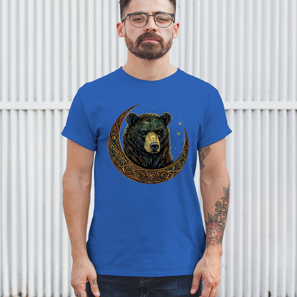 An enchanting design showcasing a powerful bear wrapped in a Celtic-style crescent moon. This graphic blends tribal symbolism, lunar phases, and forest mysticism to create a bold visual statement. Ideal for spiritual seekers, nature lovers, and those who admire magical artwork, animals, and celestial energy.