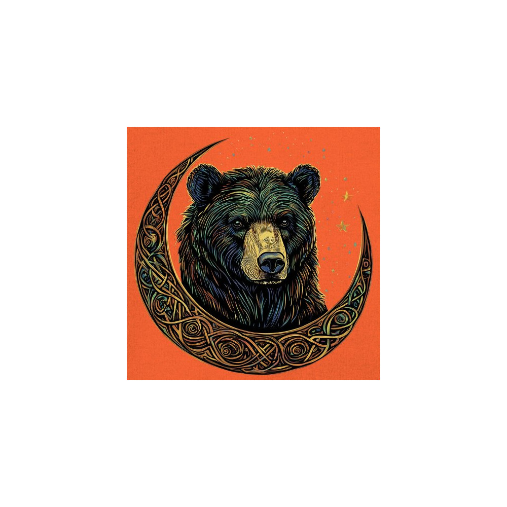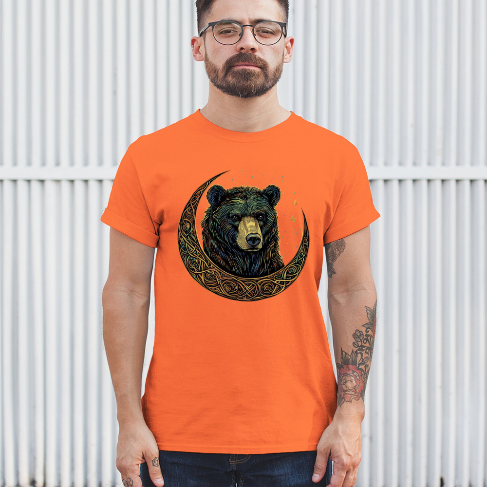 An enchanting design showcasing a powerful bear wrapped in a Celtic-style crescent moon. This graphic blends tribal symbolism, lunar phases, and forest mysticism to create a bold visual statement. Ideal for spiritual seekers, nature lovers, and those who admire magical artwork, animals, and celestial energy.