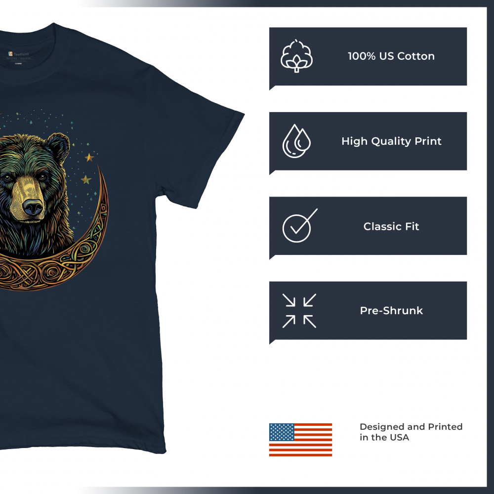 Mystical bear and Celtic moon design—perfect for nature lovers, stargazers, folklore fans, and spiritual seekers into tribal and lunar art.
