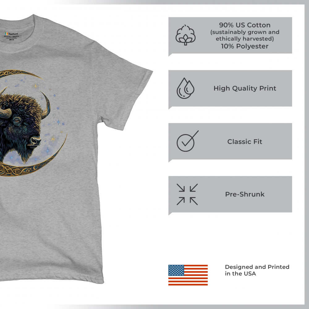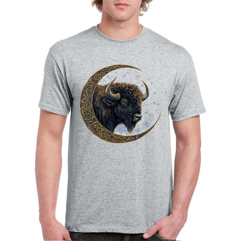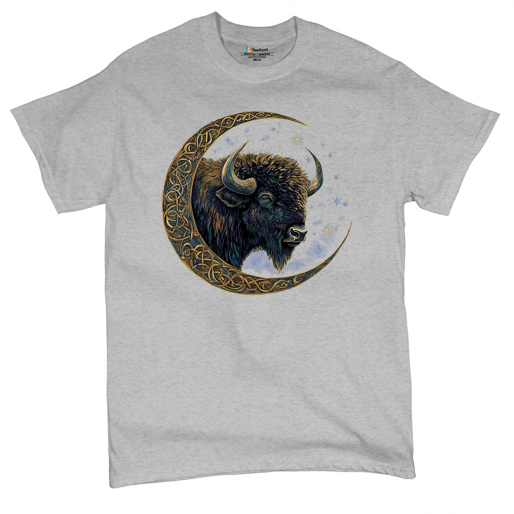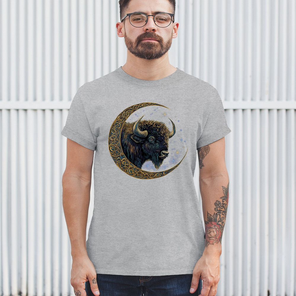 Mystical bison in Celtic moon—perfect for spiritual seekers, art fans, stargazers, and lovers of nature, tribal design, and cosmic energy.