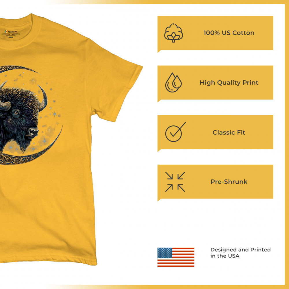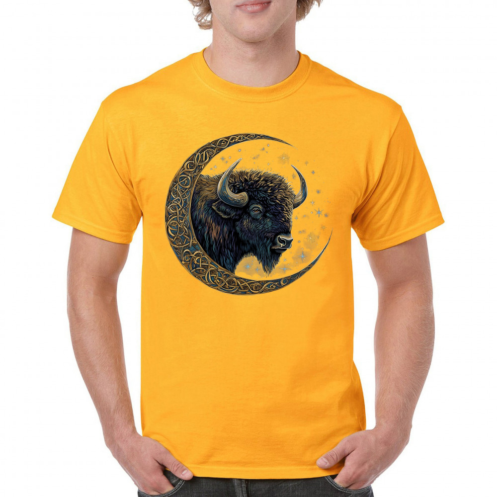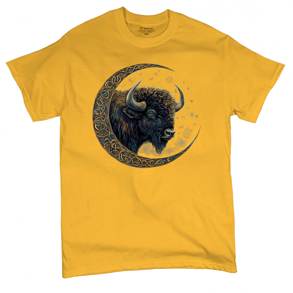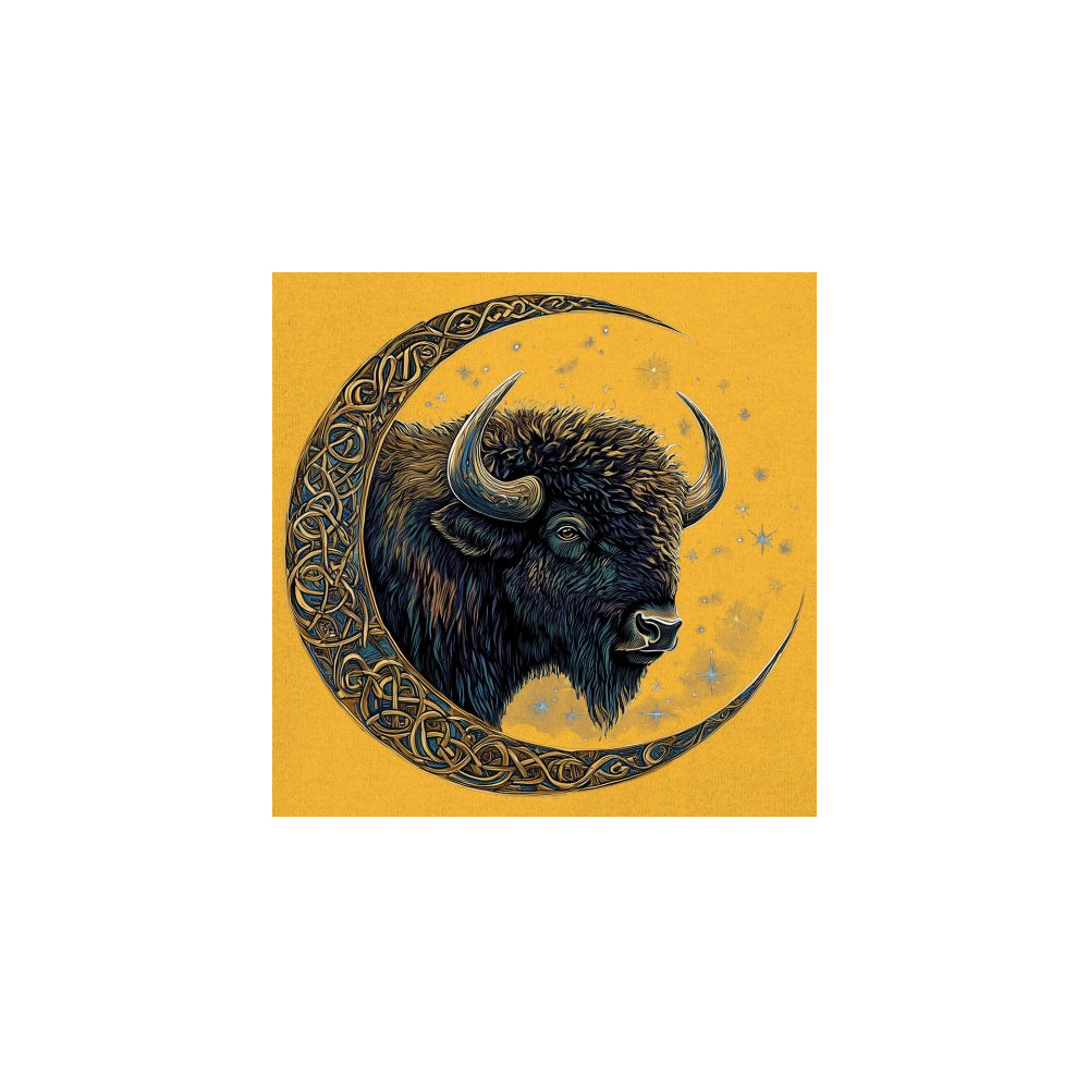 Mystical bison in Celtic moon—perfect for spiritual seekers, art fans, stargazers, and lovers of nature, tribal design, and cosmic energy.