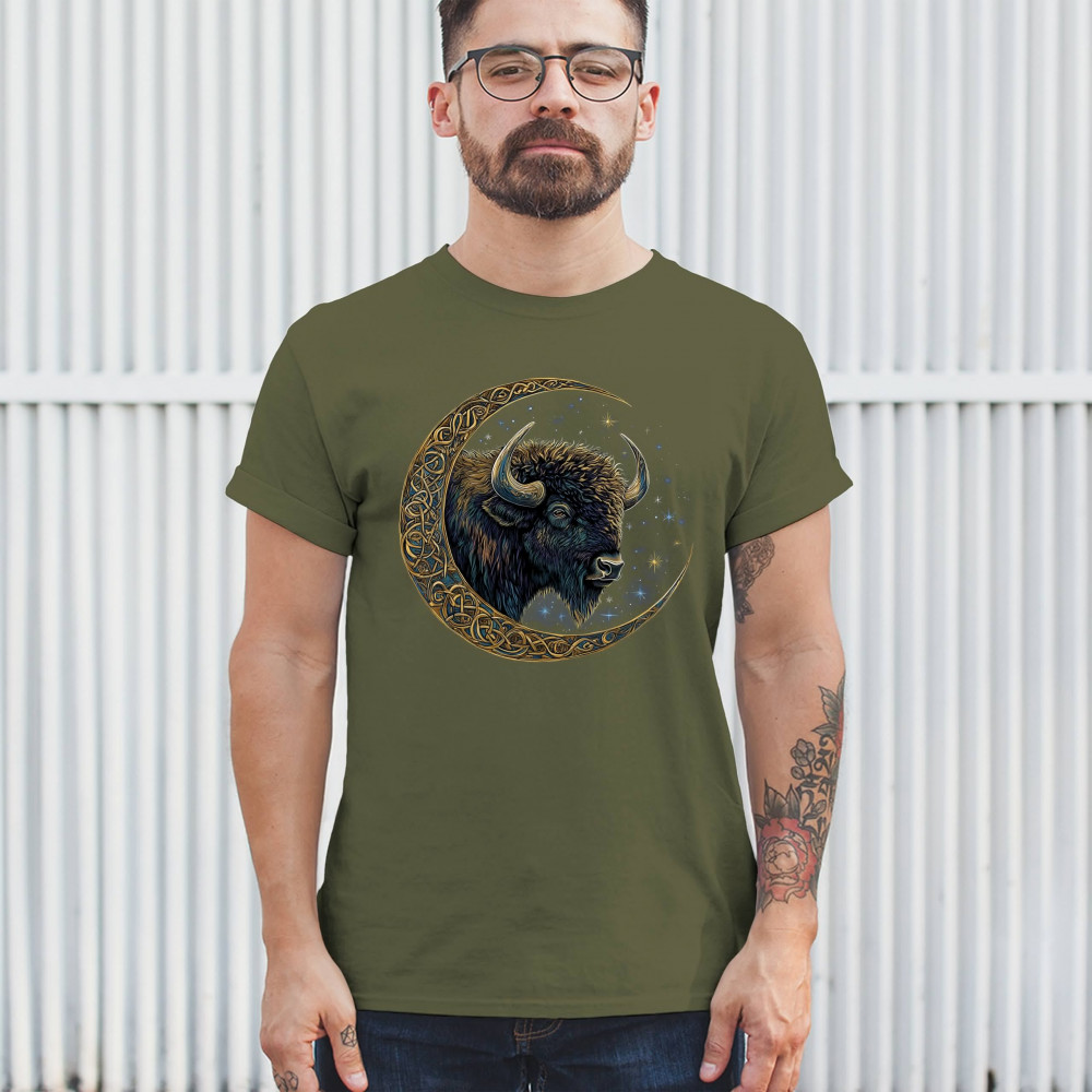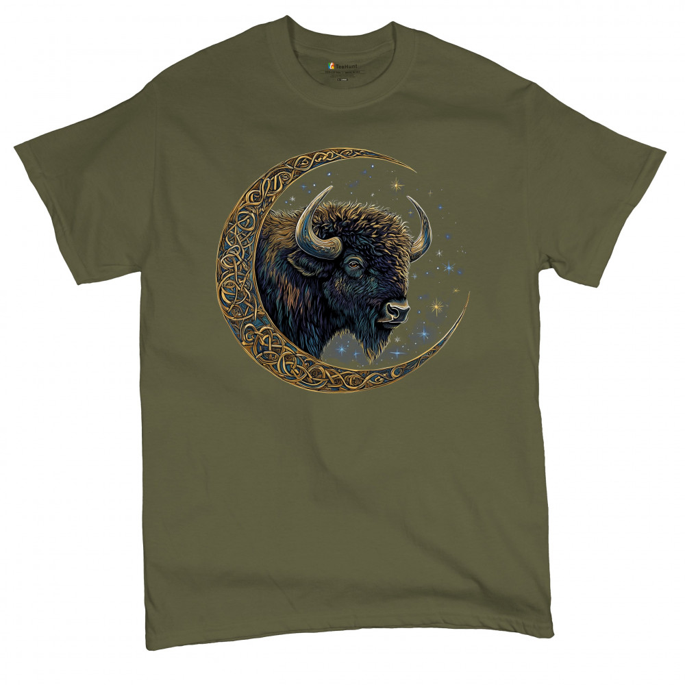 Mystical bison in Celtic moon—perfect for spiritual seekers, art fans, stargazers, and lovers of nature, tribal design, and cosmic energy.