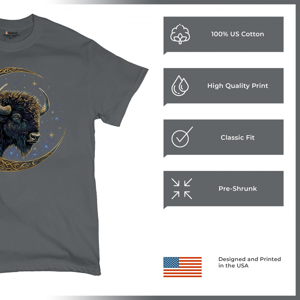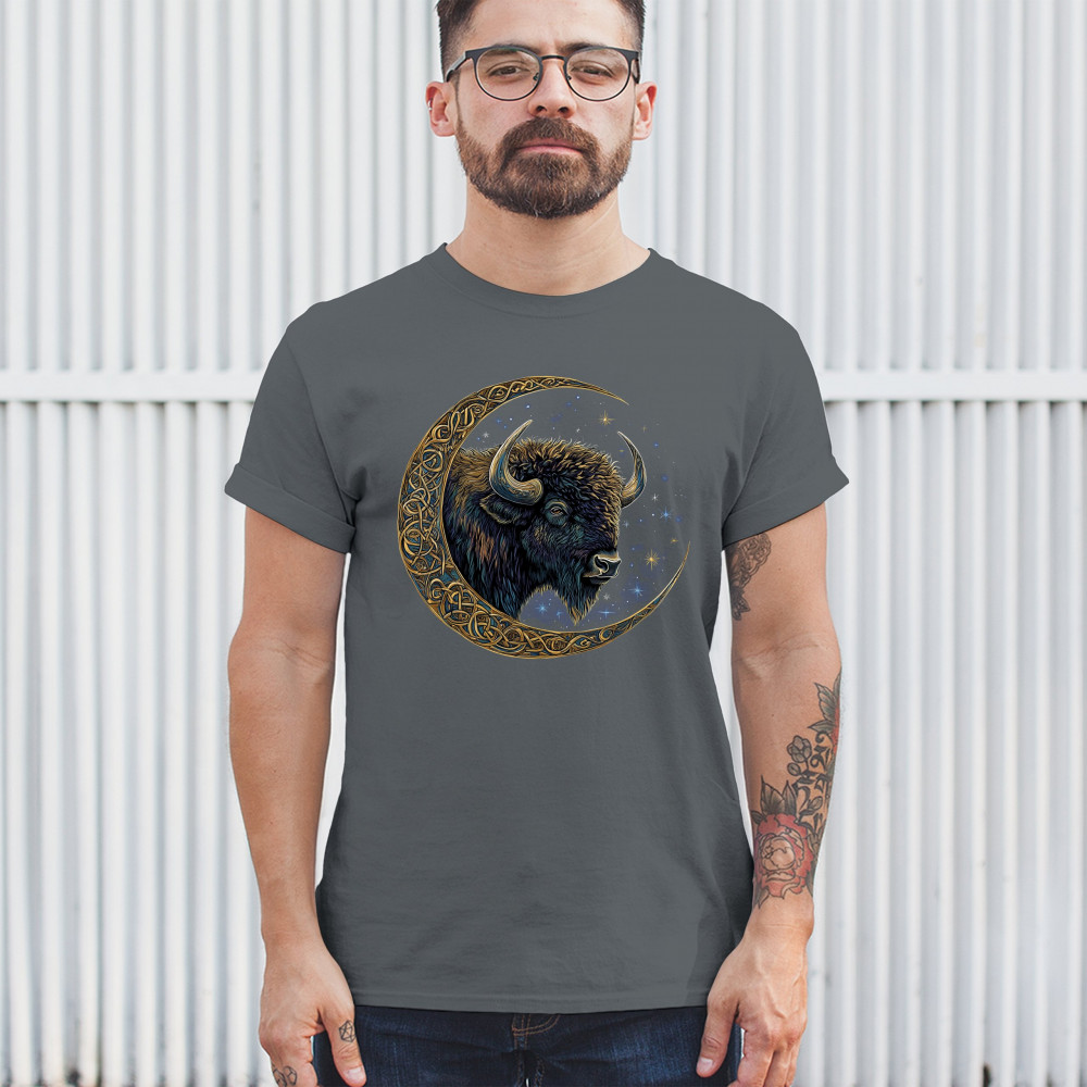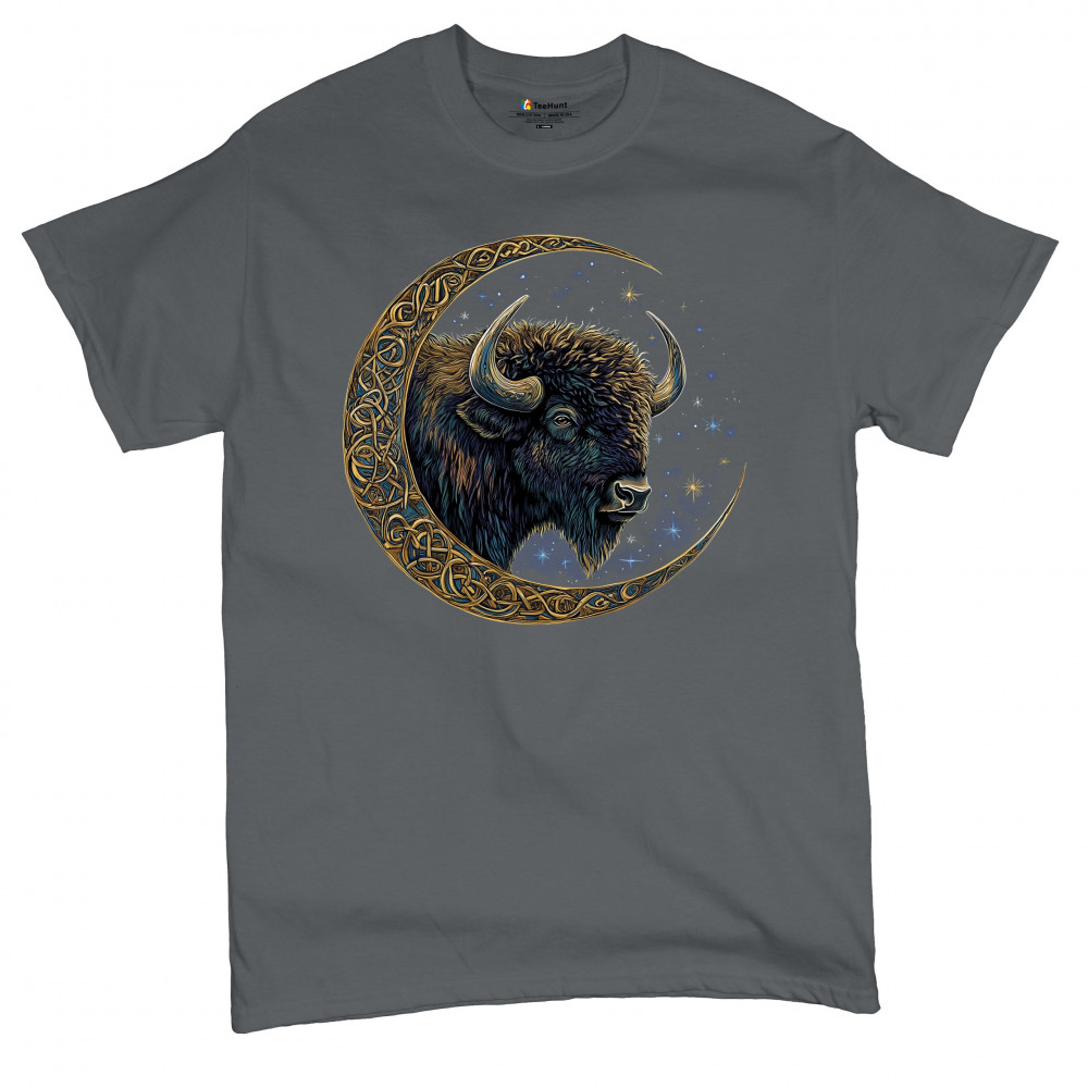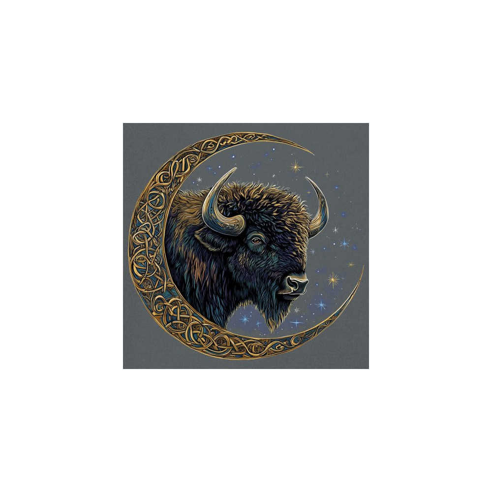 Mystical bison in Celtic moon—perfect for spiritual seekers, art fans, stargazers, and lovers of nature, tribal design, and cosmic energy.