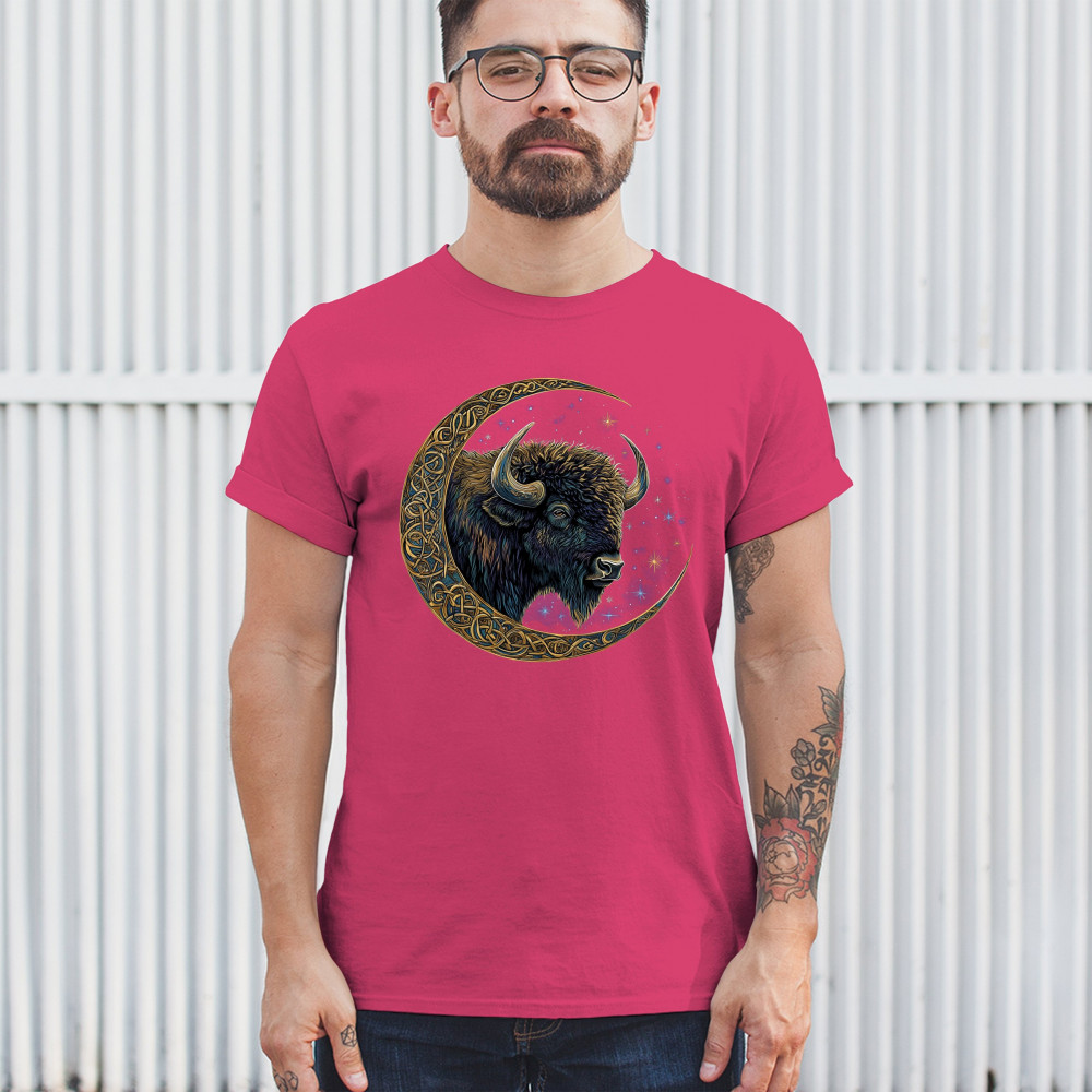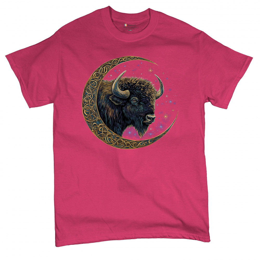 Mystical bison in Celtic moon—perfect for spiritual seekers, art fans, stargazers, and lovers of nature, tribal design, and cosmic energy.