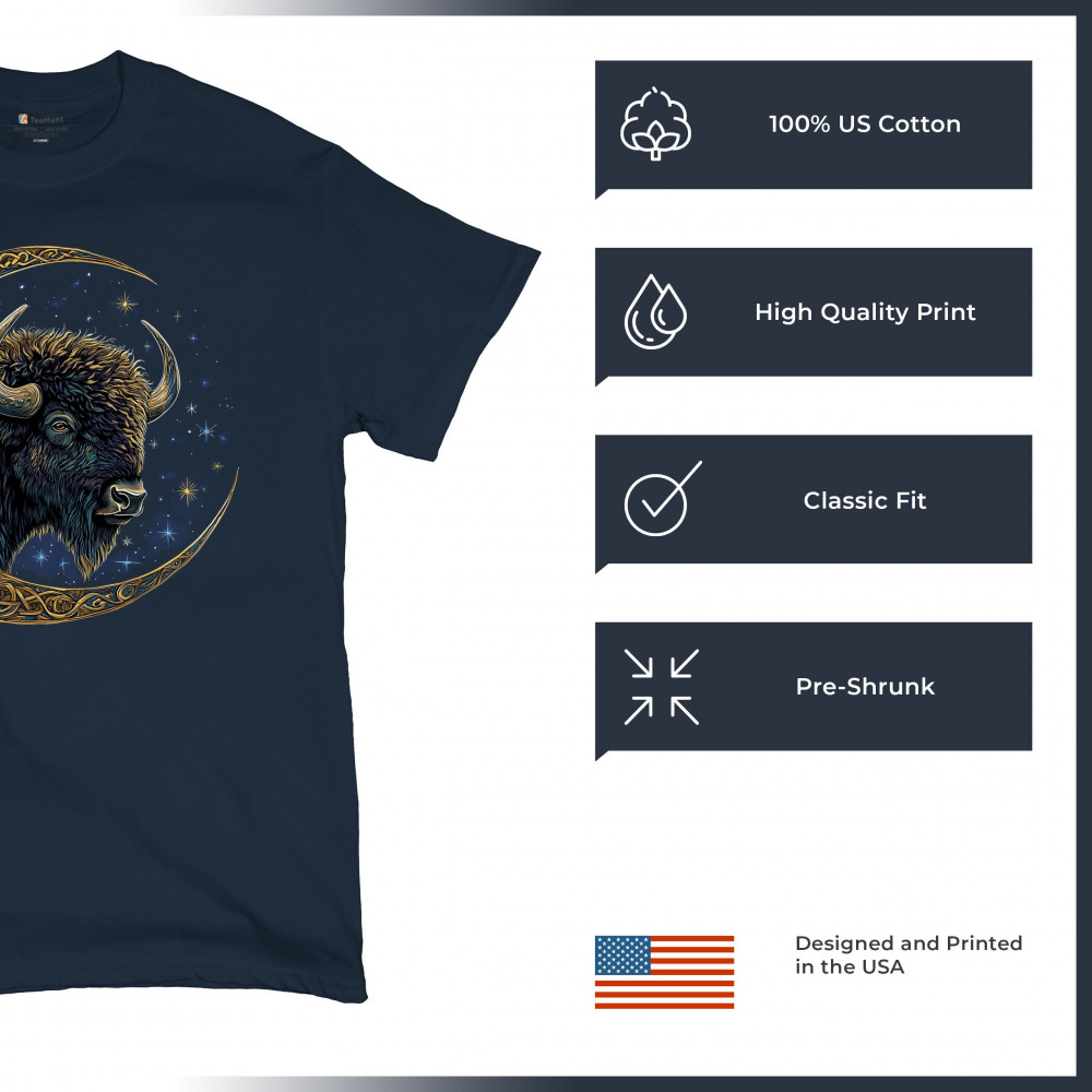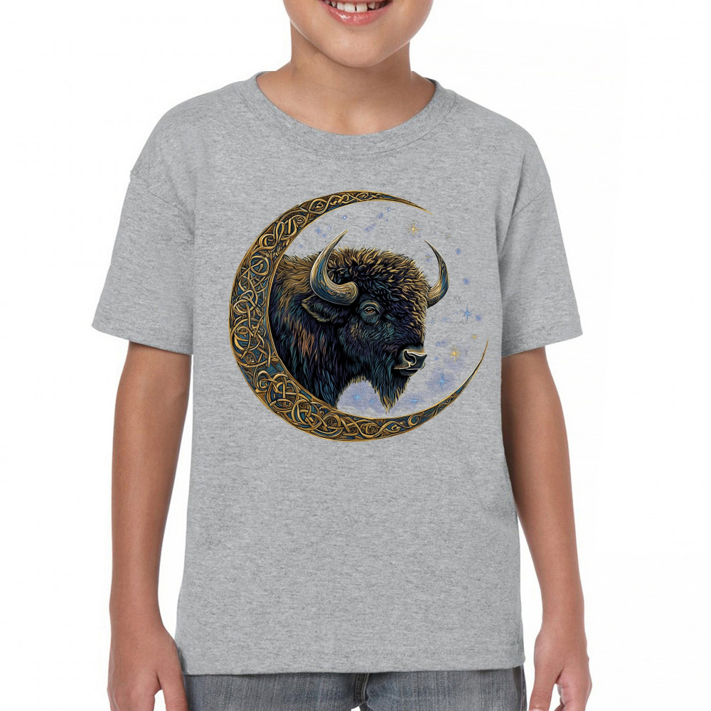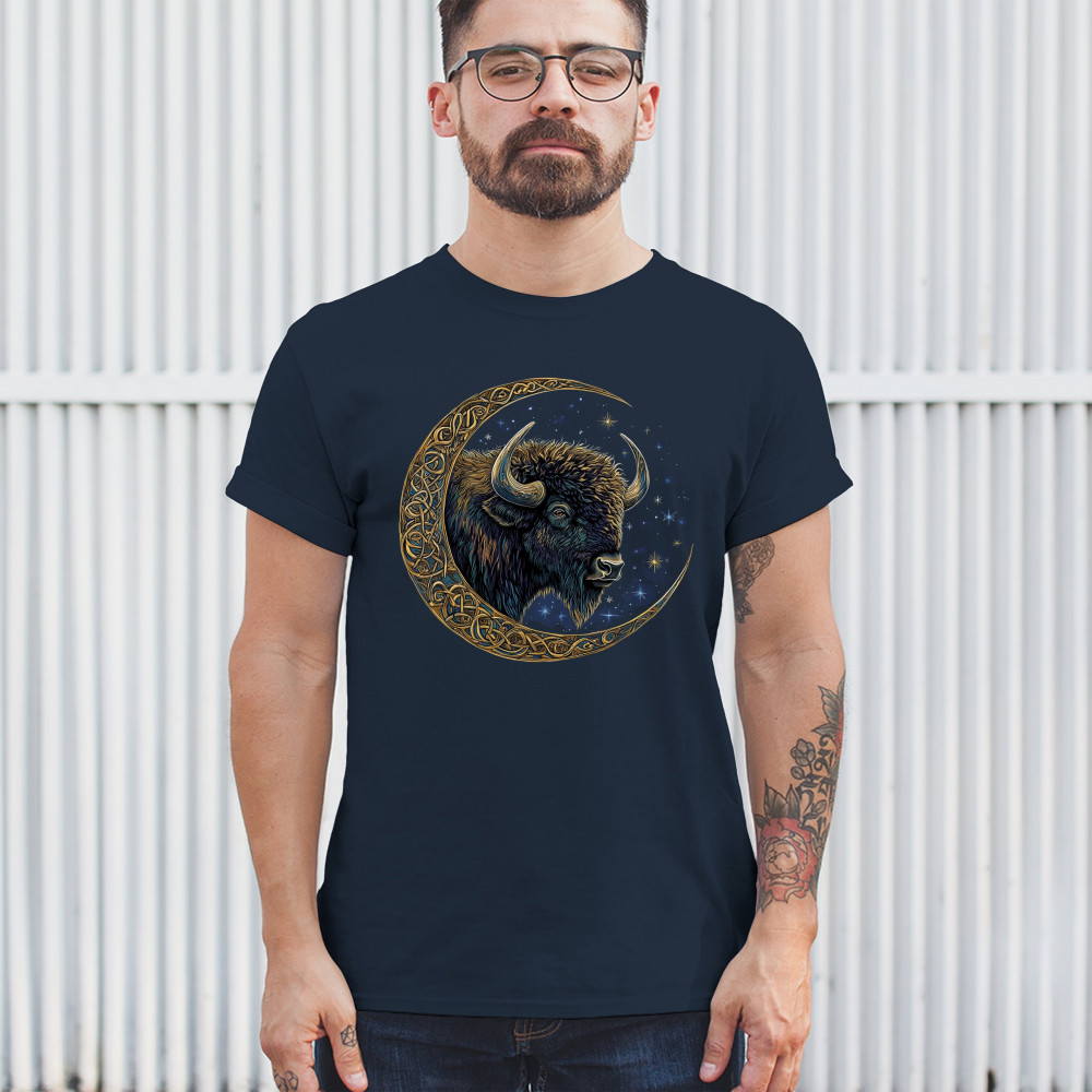 Mystical bison in Celtic moon—perfect for spiritual seekers, art fans, stargazers, and lovers of nature, tribal design, and cosmic energy.