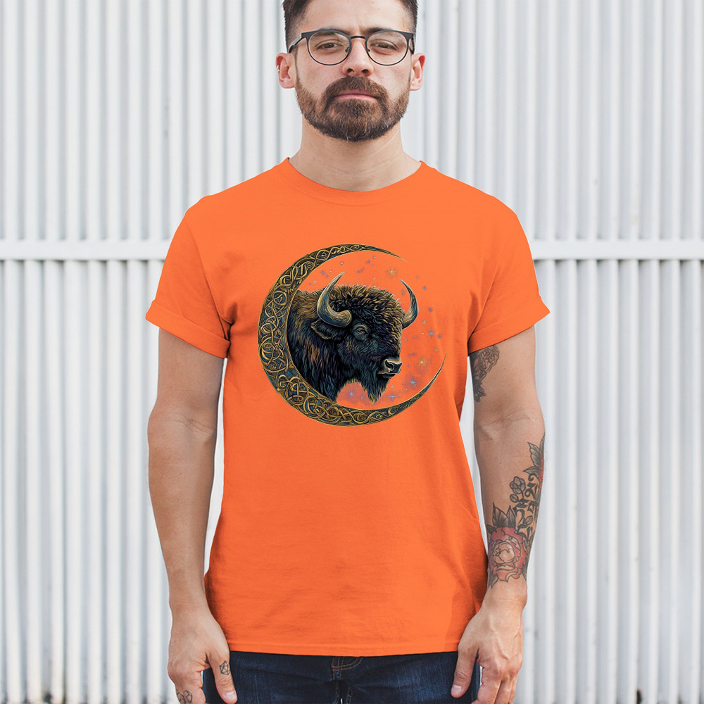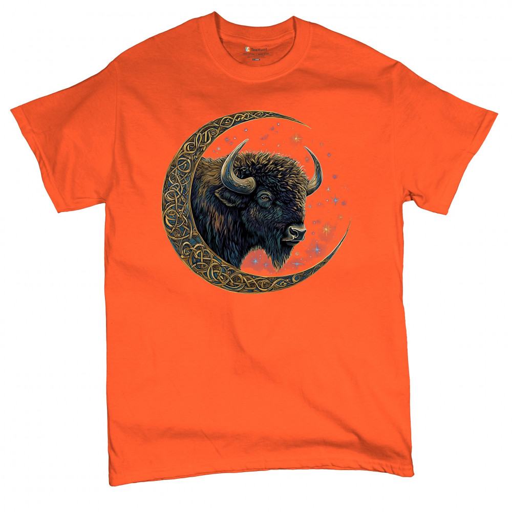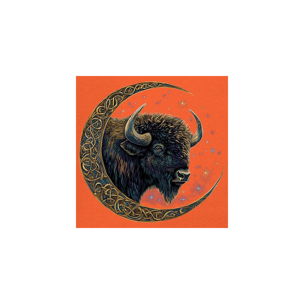 Mystical bison in Celtic moon—perfect for spiritual seekers, art fans, stargazers, and lovers of nature, tribal design, and cosmic energy.