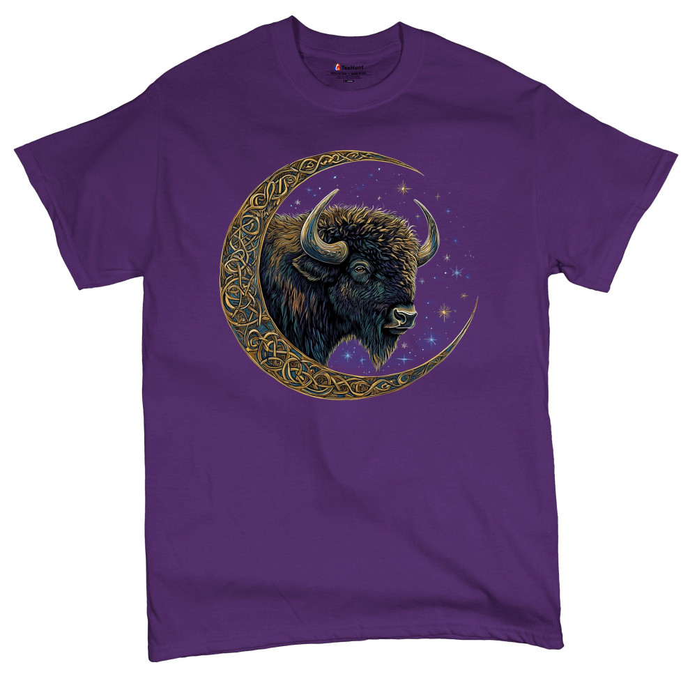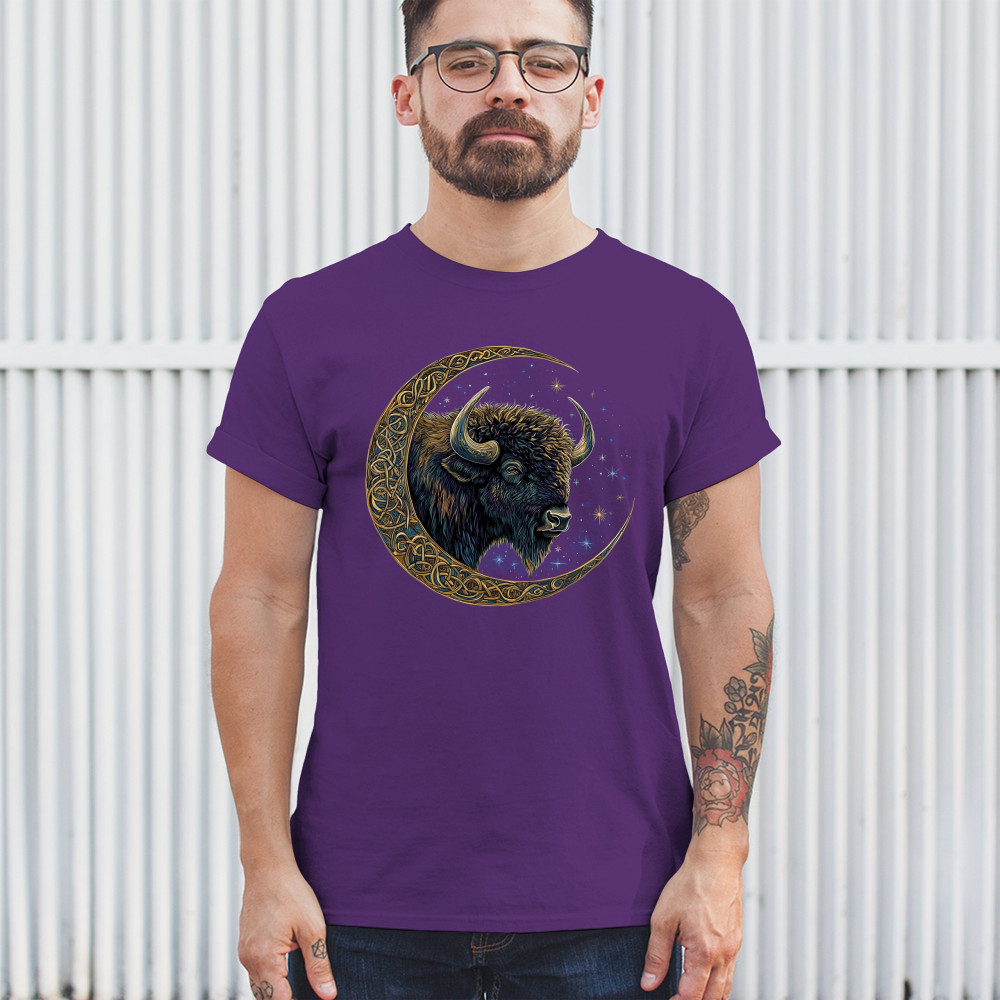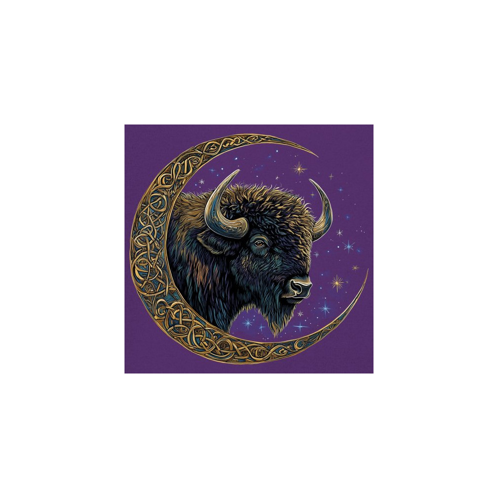 Mystical bison in Celtic moon—perfect for spiritual seekers, art fans, stargazers, and lovers of nature, tribal design, and cosmic energy.