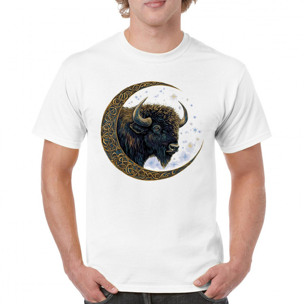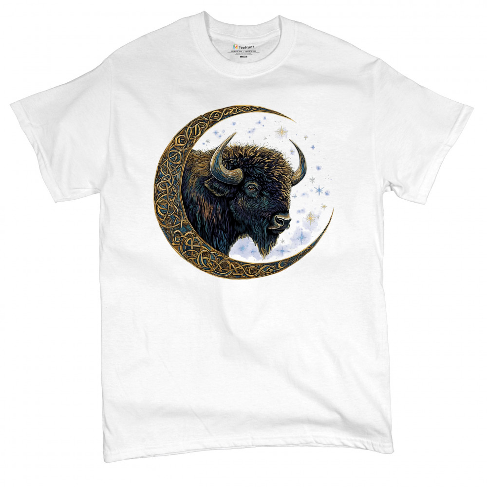 Mystical bison in Celtic moon—perfect for spiritual seekers, art fans, stargazers, and lovers of nature, tribal design, and cosmic energy.