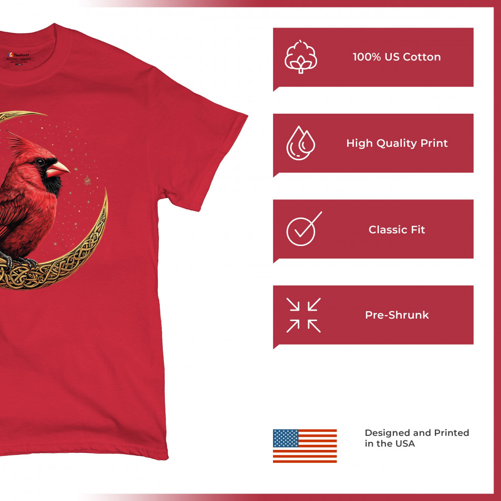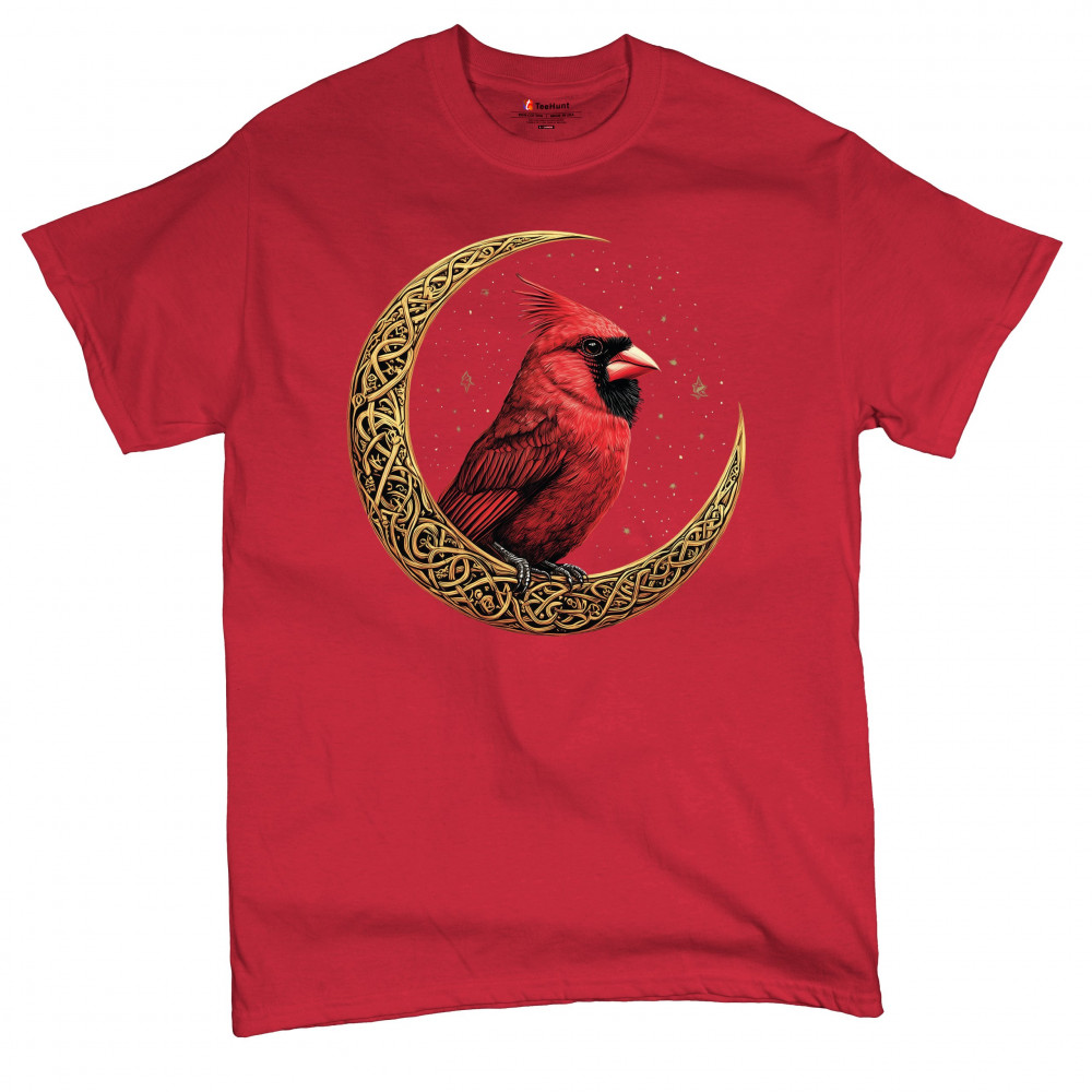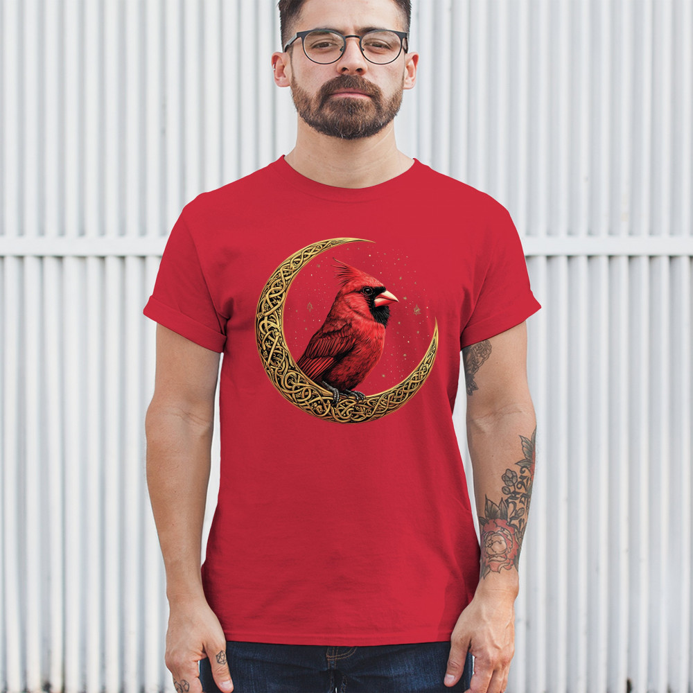 Mystical cardinal with Celtic moon and stars—perfect for nature lovers, spiritual souls, and those honoring love, loss, or remembrance.