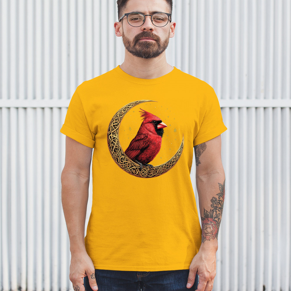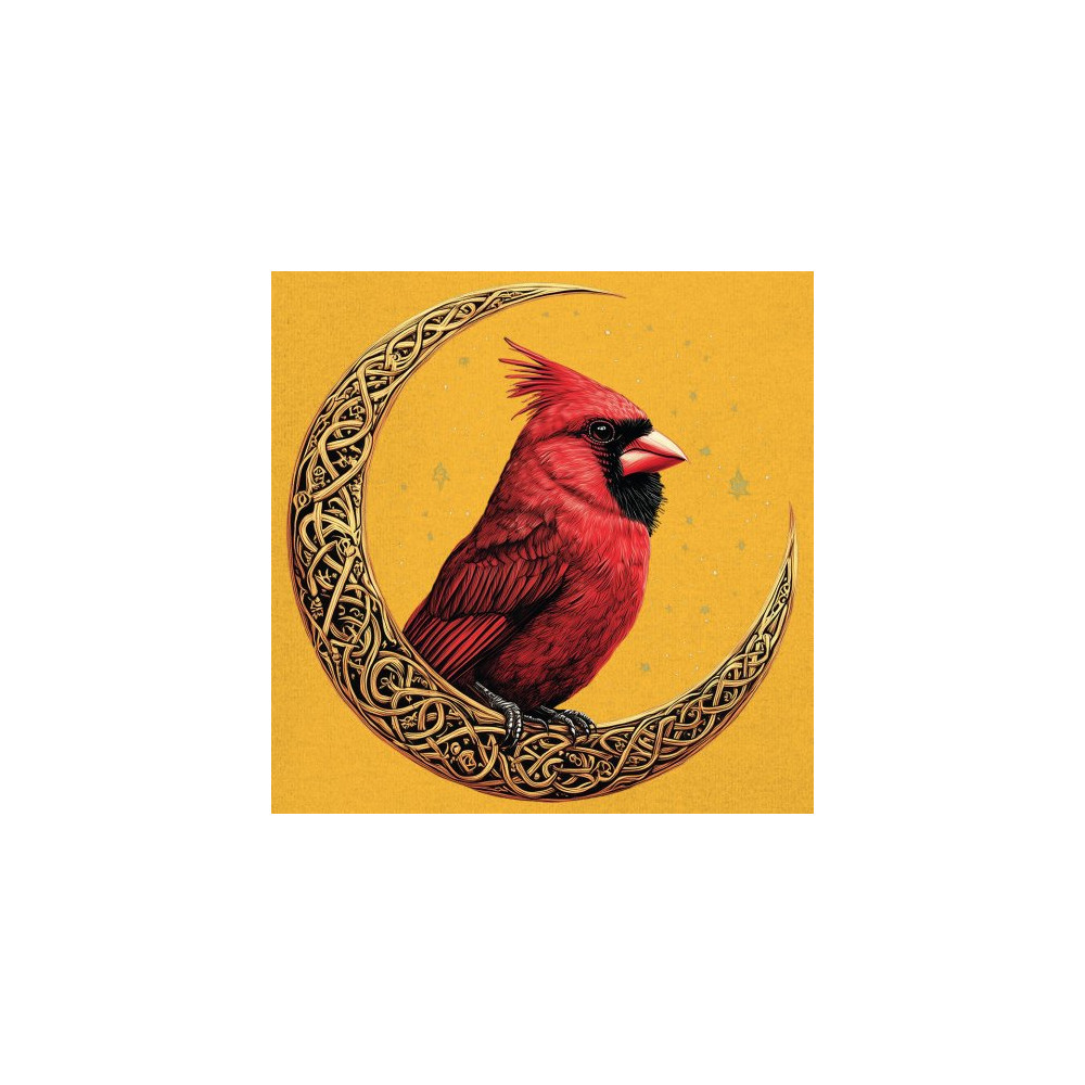 Mystical cardinal with Celtic moon and stars—perfect for nature lovers, spiritual souls, and those honoring love, loss, or remembrance.