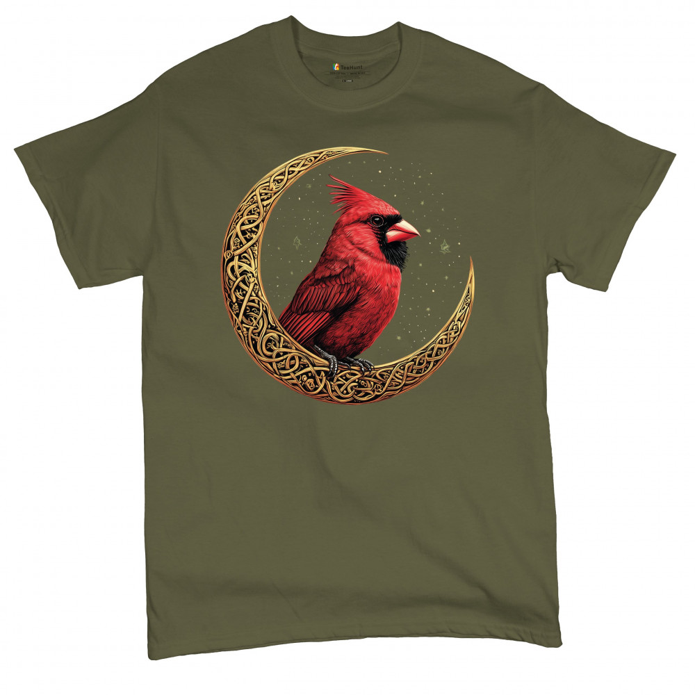 Mystical cardinal with Celtic moon and stars—perfect for nature lovers, spiritual souls, and those honoring love, loss, or remembrance.