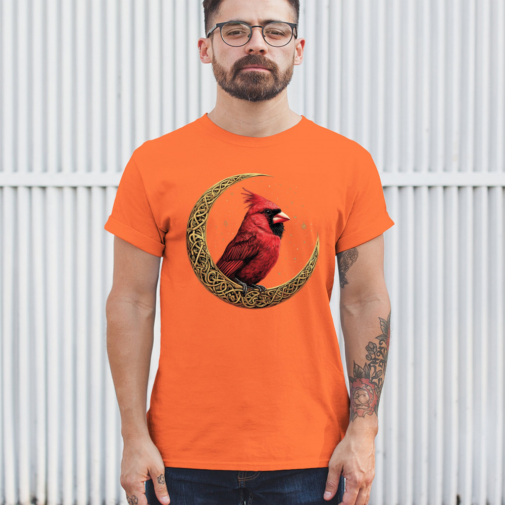 Mystical cardinal with Celtic moon and stars—perfect for nature lovers, spiritual souls, and those honoring love, loss, or remembrance.
