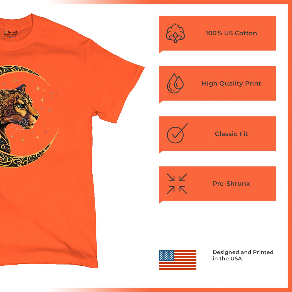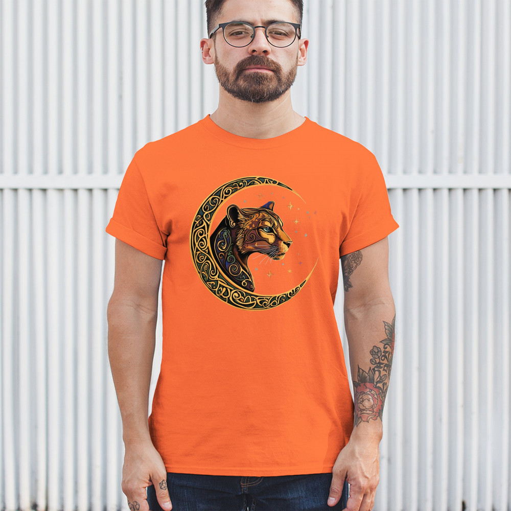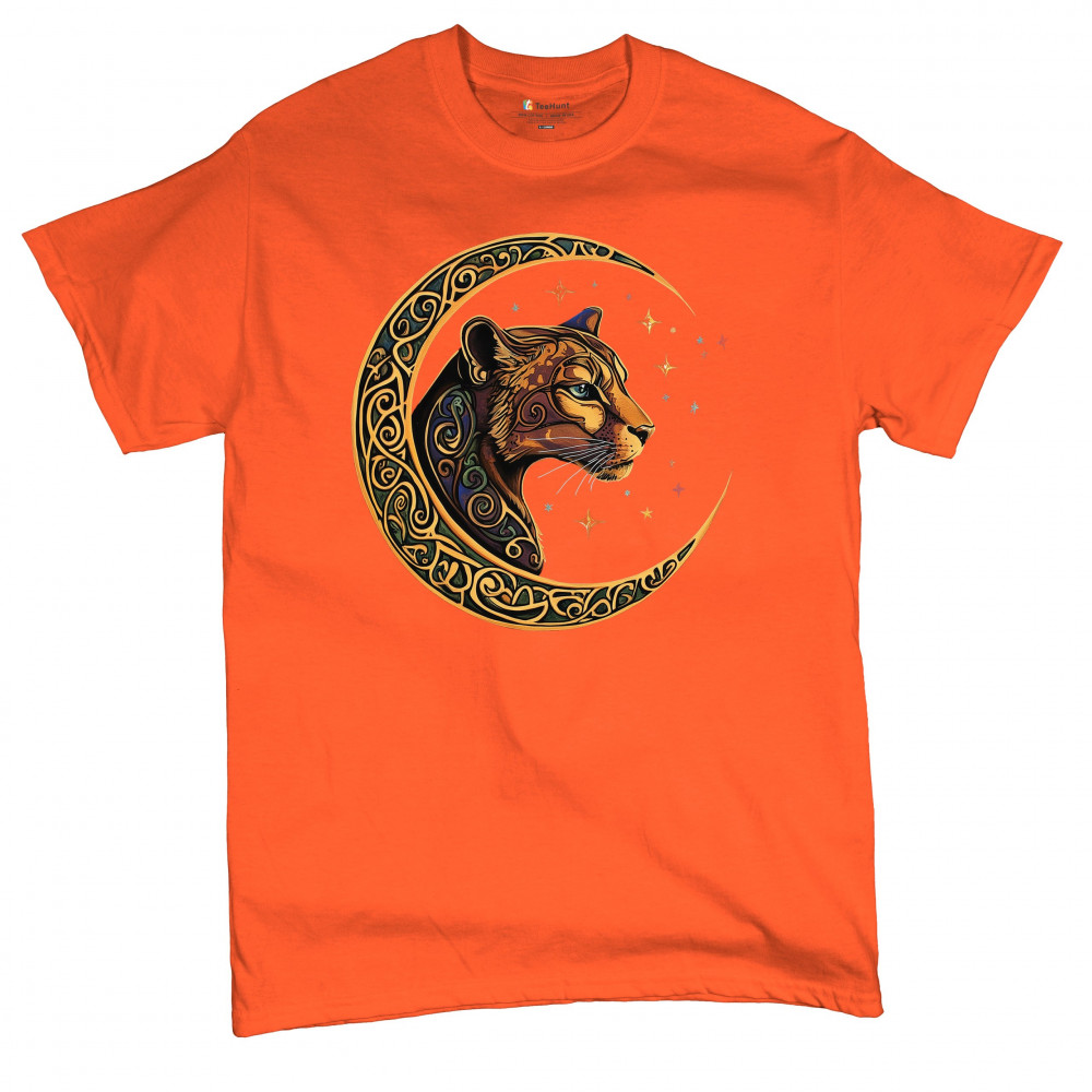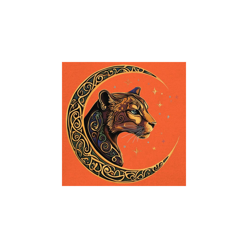 Mystical and elegant, this celestial leopard design merges wild animal strength with spiritual energy. Framed by a golden Celtic crescent moon and set against a starlit sky, it captures themes of nature, intuition, tribal symbolism, fantasy, and feminine power. Ideal for astrology fans, animal lovers, and seekers of cosmic connection.