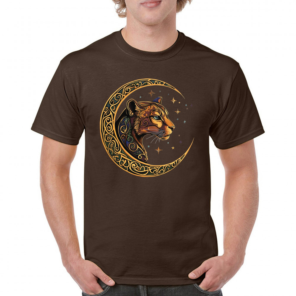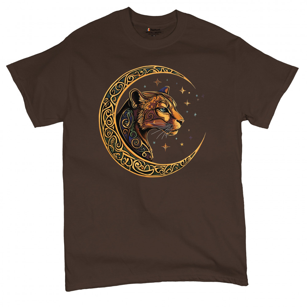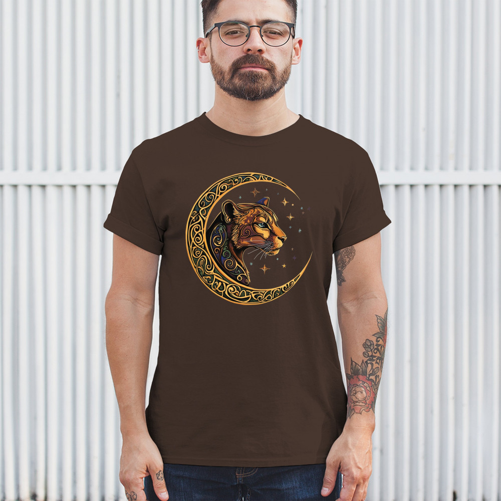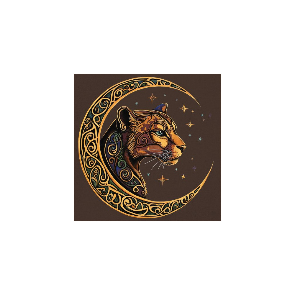 Mystical and elegant, this celestial leopard design merges wild animal strength with spiritual energy. Framed by a golden Celtic crescent moon and set against a starlit sky, it captures themes of nature, intuition, tribal symbolism, fantasy, and feminine power. Ideal for astrology fans, animal lovers, and seekers of cosmic connection.