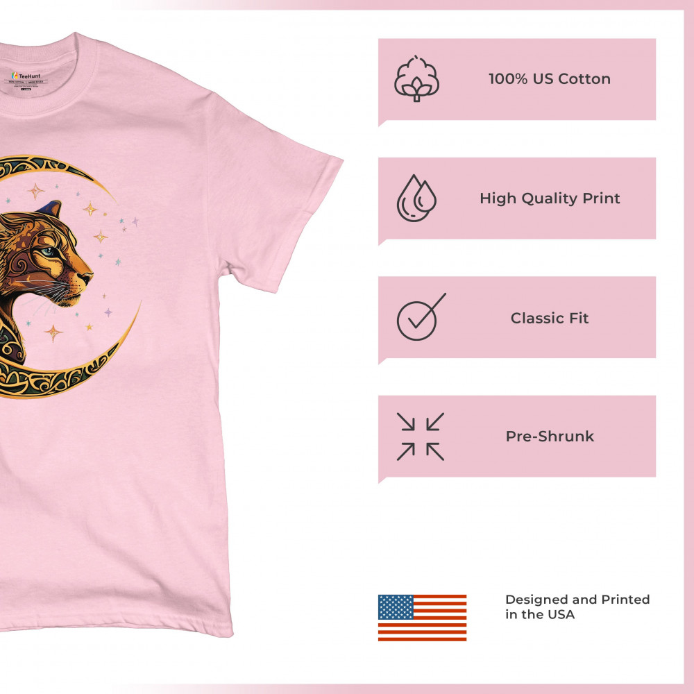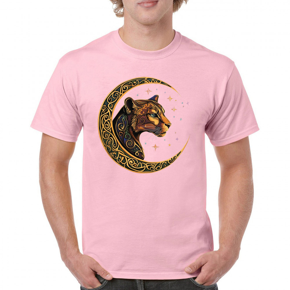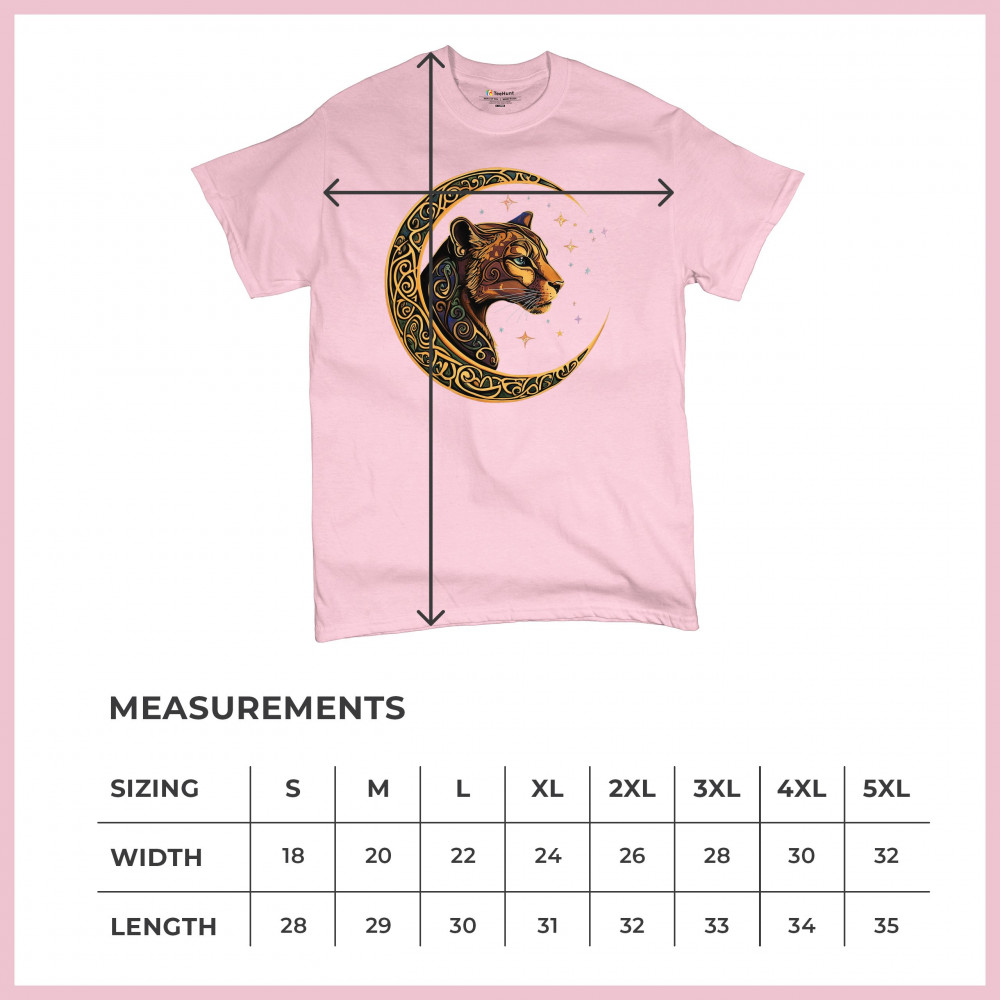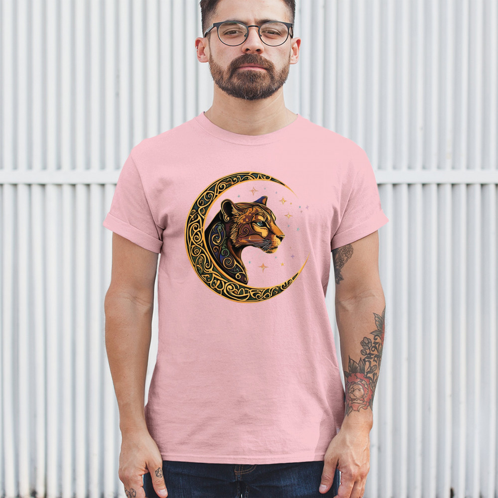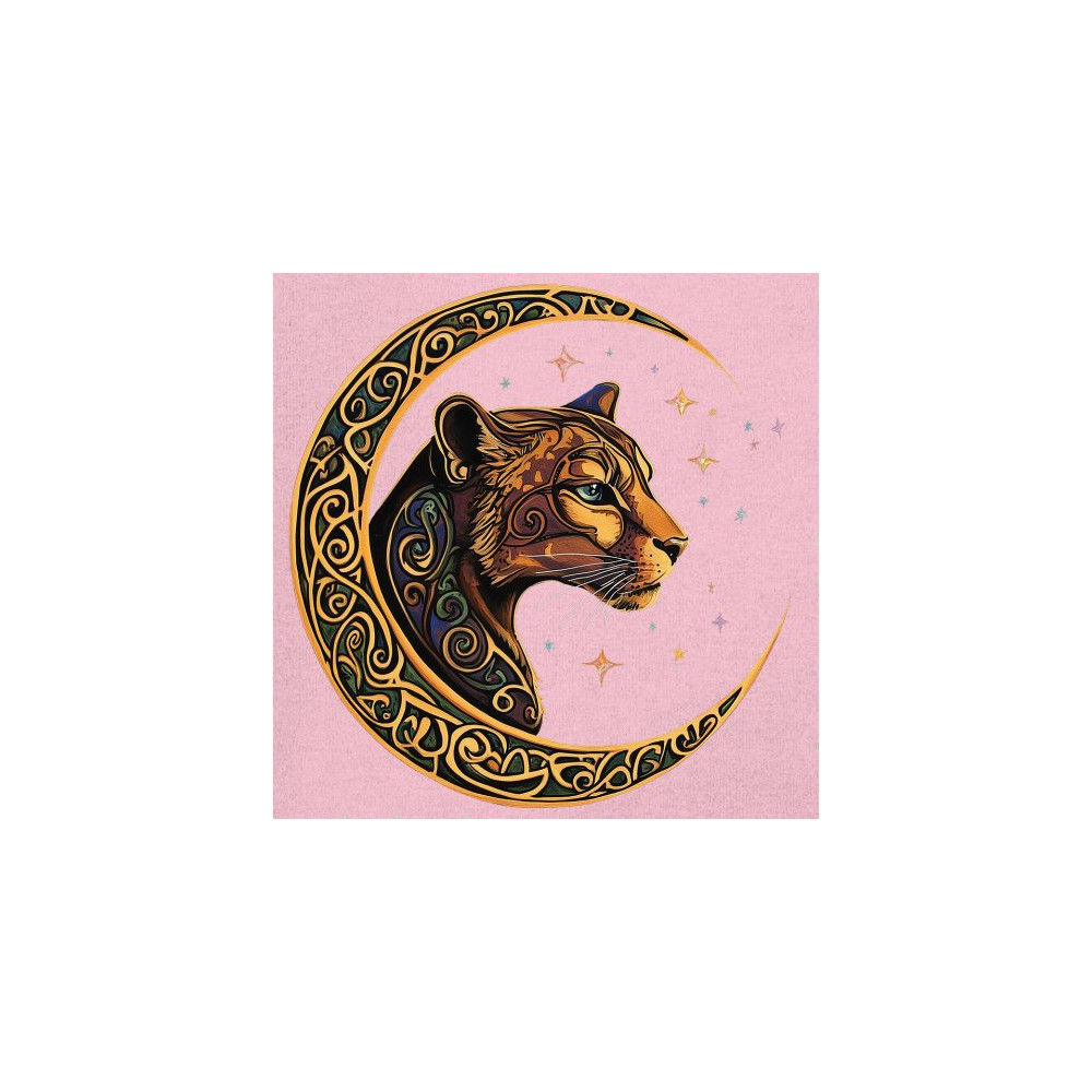 Mystical and elegant, this celestial leopard design merges wild animal strength with spiritual energy. Framed by a golden Celtic crescent moon and set against a starlit sky, it captures themes of nature, intuition, tribal symbolism, fantasy, and feminine power. Ideal for astrology fans, animal lovers, and seekers of cosmic connection.