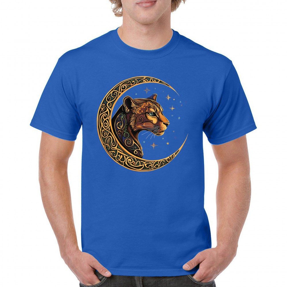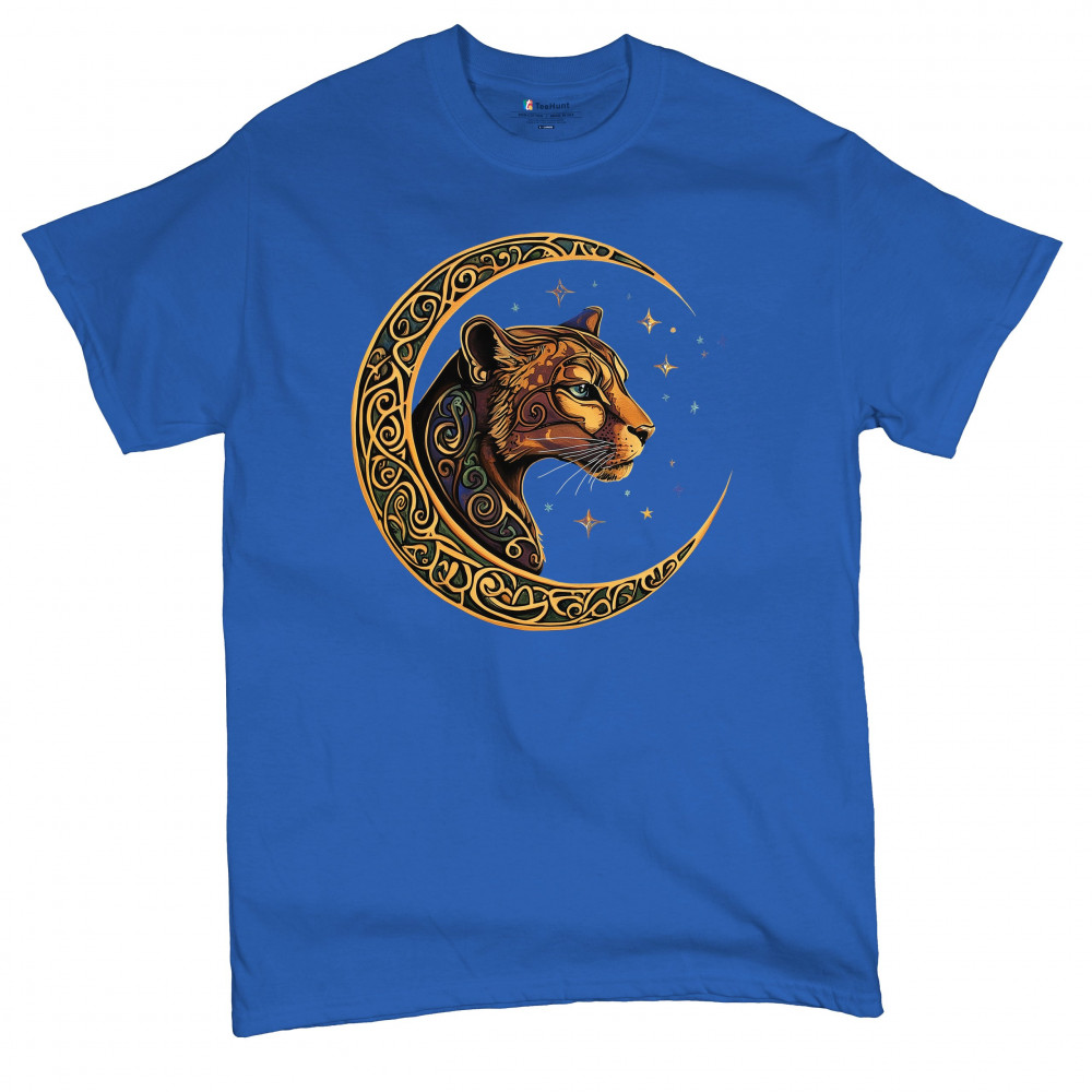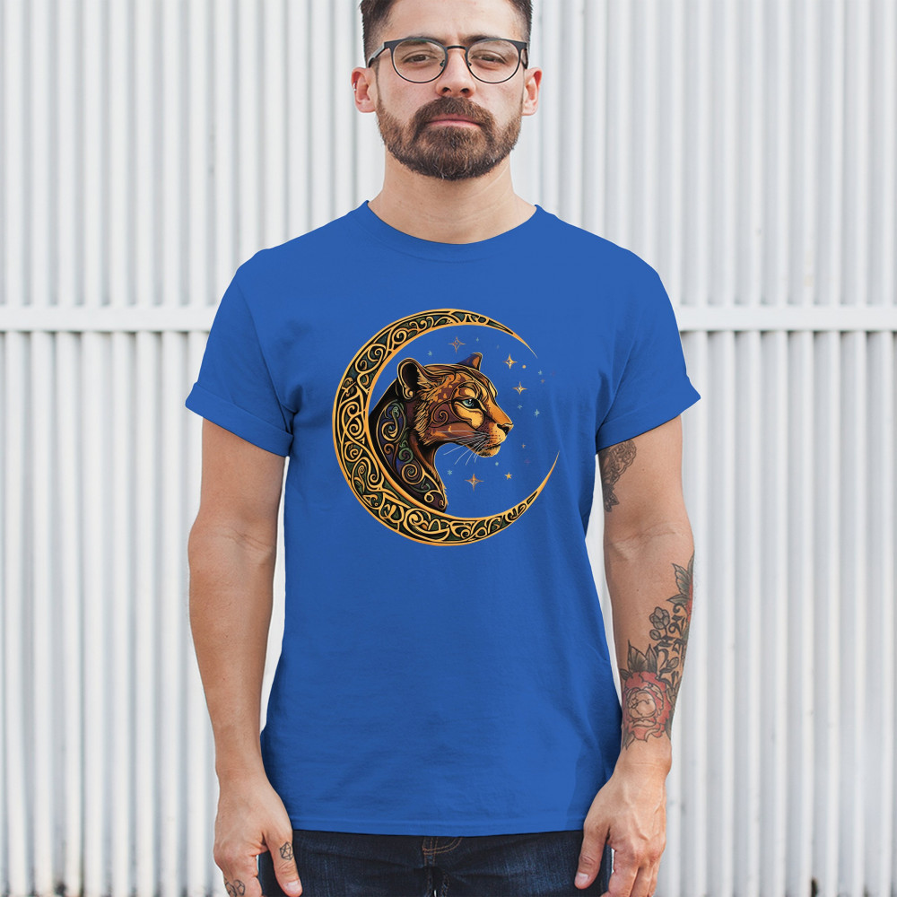 Mystical and elegant, this celestial leopard design merges wild animal strength with spiritual energy. Framed by a golden Celtic crescent moon and set against a starlit sky, it captures themes of nature, intuition, tribal symbolism, fantasy, and feminine power. Ideal for astrology fans, animal lovers, and seekers of cosmic connection.