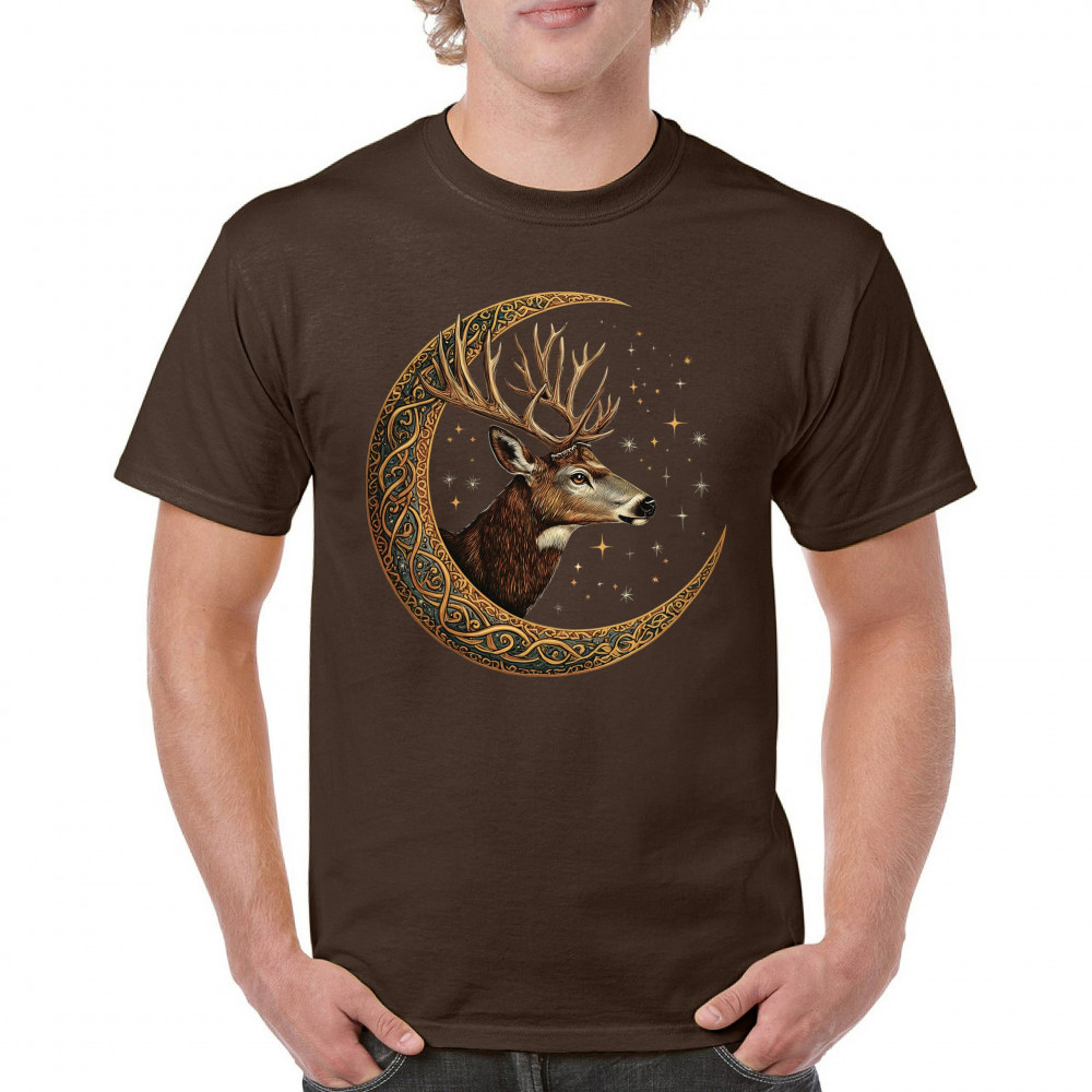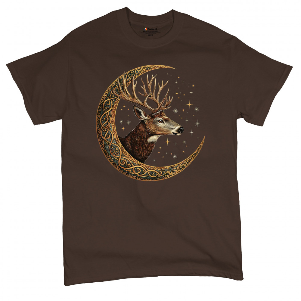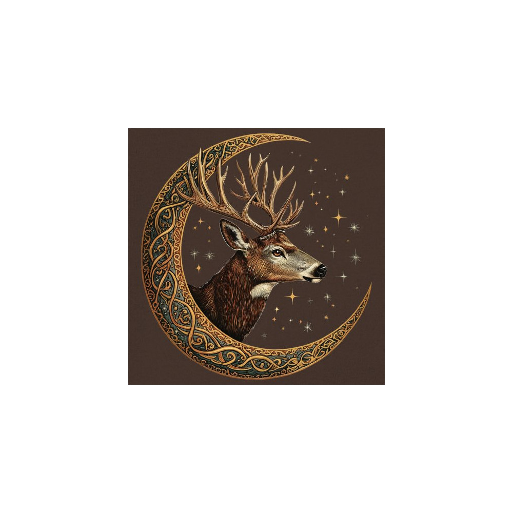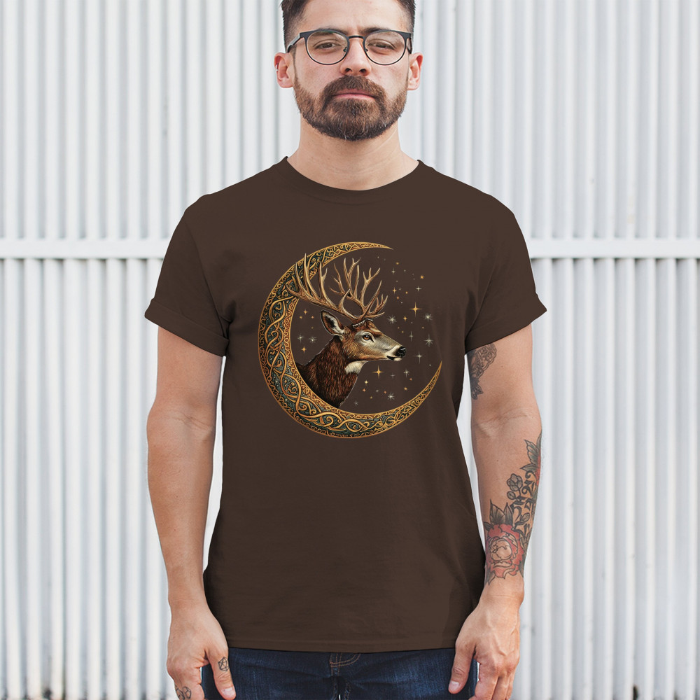 Majestic deer in Celtic moon with stars—symbol of protection, nature, and cosmic wisdom. A mystical gift for hunters, druids, and forest lovers.