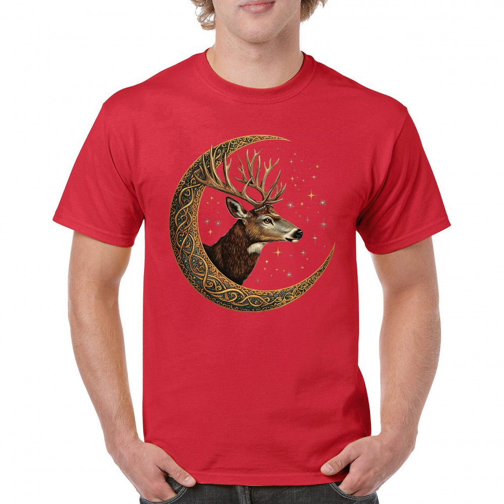 Majestic deer in Celtic moon with stars—symbol of protection, nature, and cosmic wisdom. A mystical gift for hunters, druids, and forest lovers.