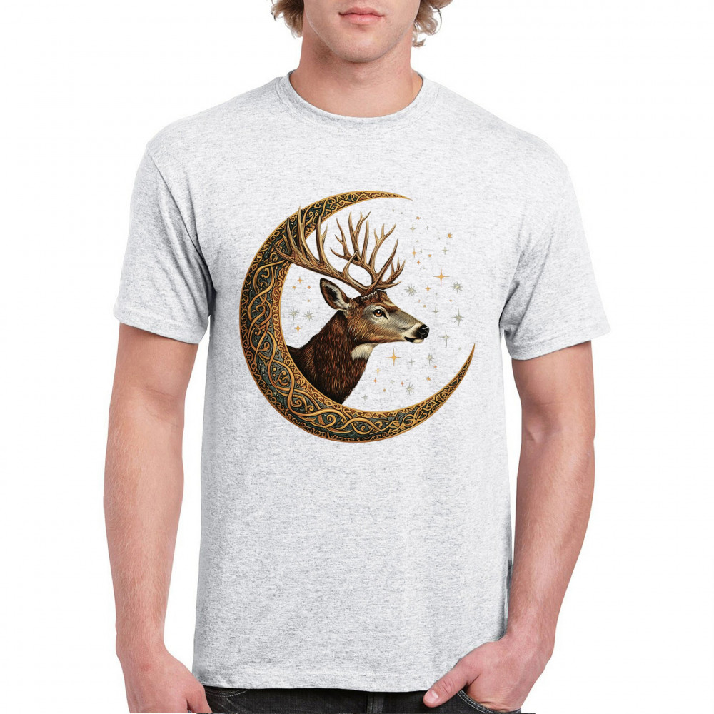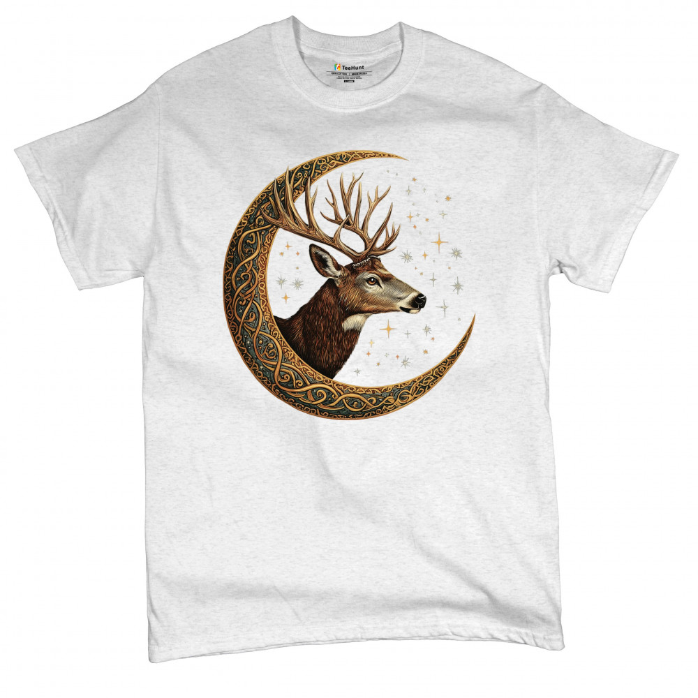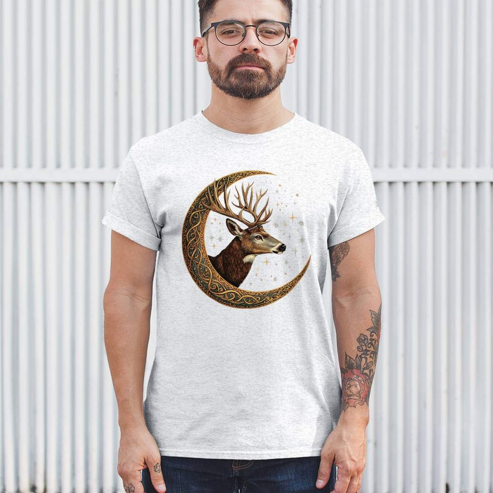Majestic deer in Celtic moon with stars—symbol of protection, nature, and cosmic wisdom. A mystical gift for hunters, druids, and forest lovers.