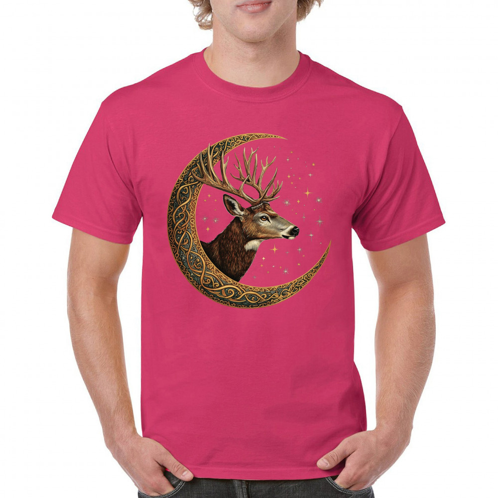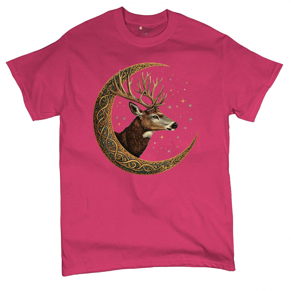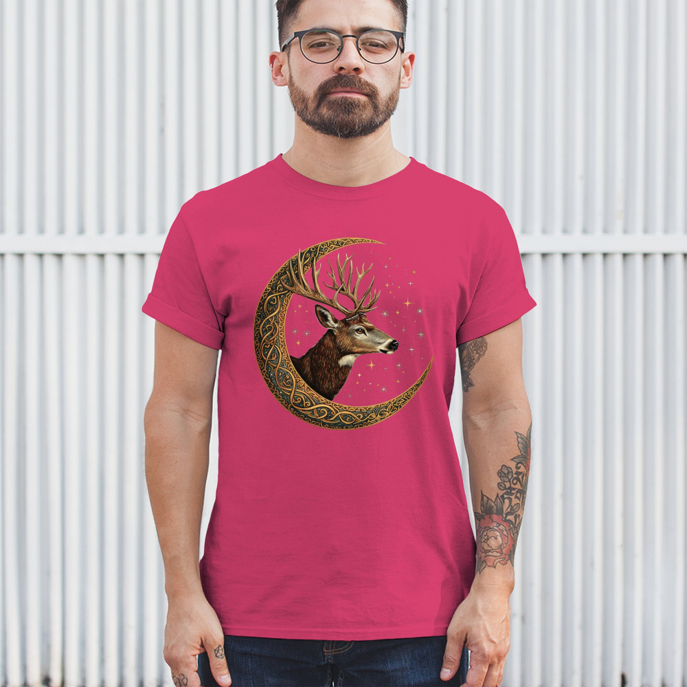 Majestic deer in Celtic moon with stars—symbol of protection, nature, and cosmic wisdom. A mystical gift for hunters, druids, and forest lovers.