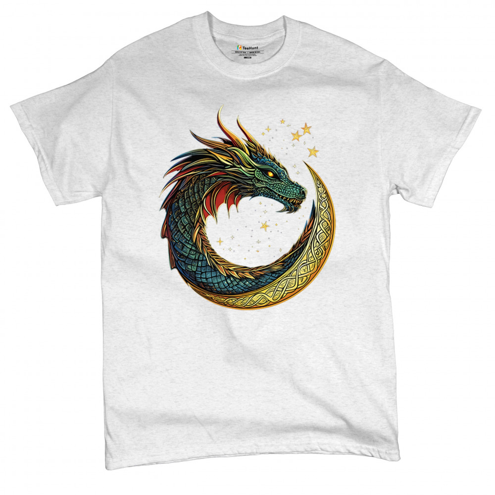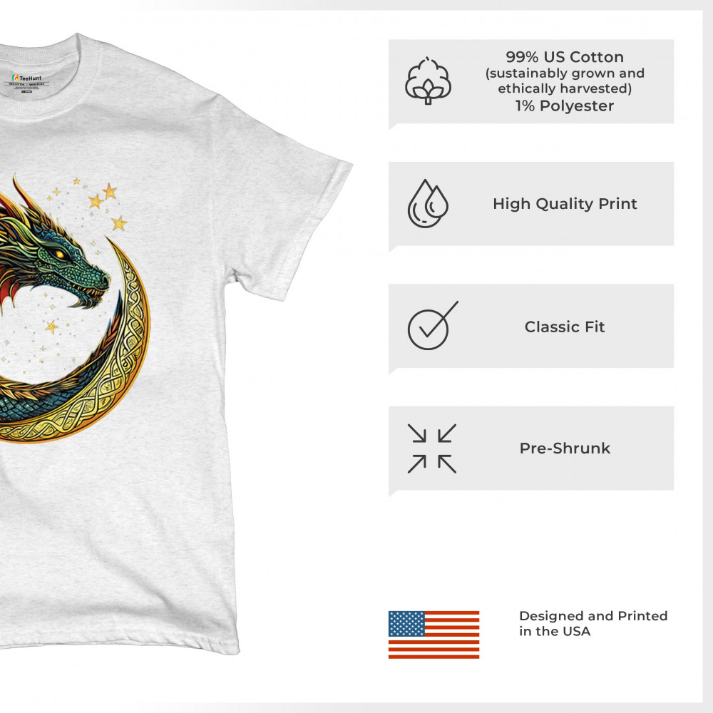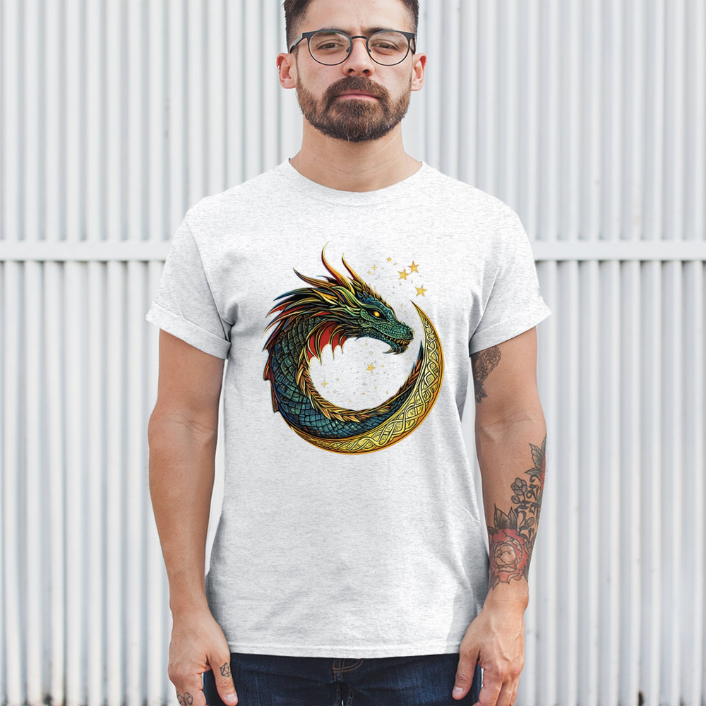 Unleash the spirit of transformation with this fierce dragon coiled inside a golden Celtic crescent moon. Its radiant scales and glowing eyes come to life against a starry, mystical sky. A symbol of fire energy, wisdom, and primal strength—perfect for gamers, fantasy enthusiasts, spiritual seekers, and legend lovers.