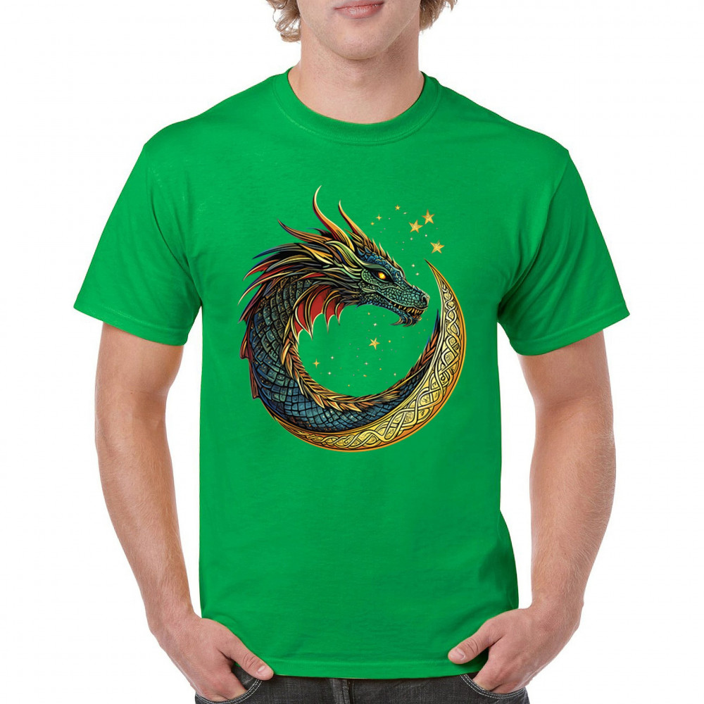 Unleash the spirit of transformation with this fierce dragon coiled inside a golden Celtic crescent moon. Its radiant scales and glowing eyes come to life against a starry, mystical sky. A symbol of fire energy, wisdom, and primal strength—perfect for gamers, fantasy enthusiasts, spiritual seekers, and legend lovers.