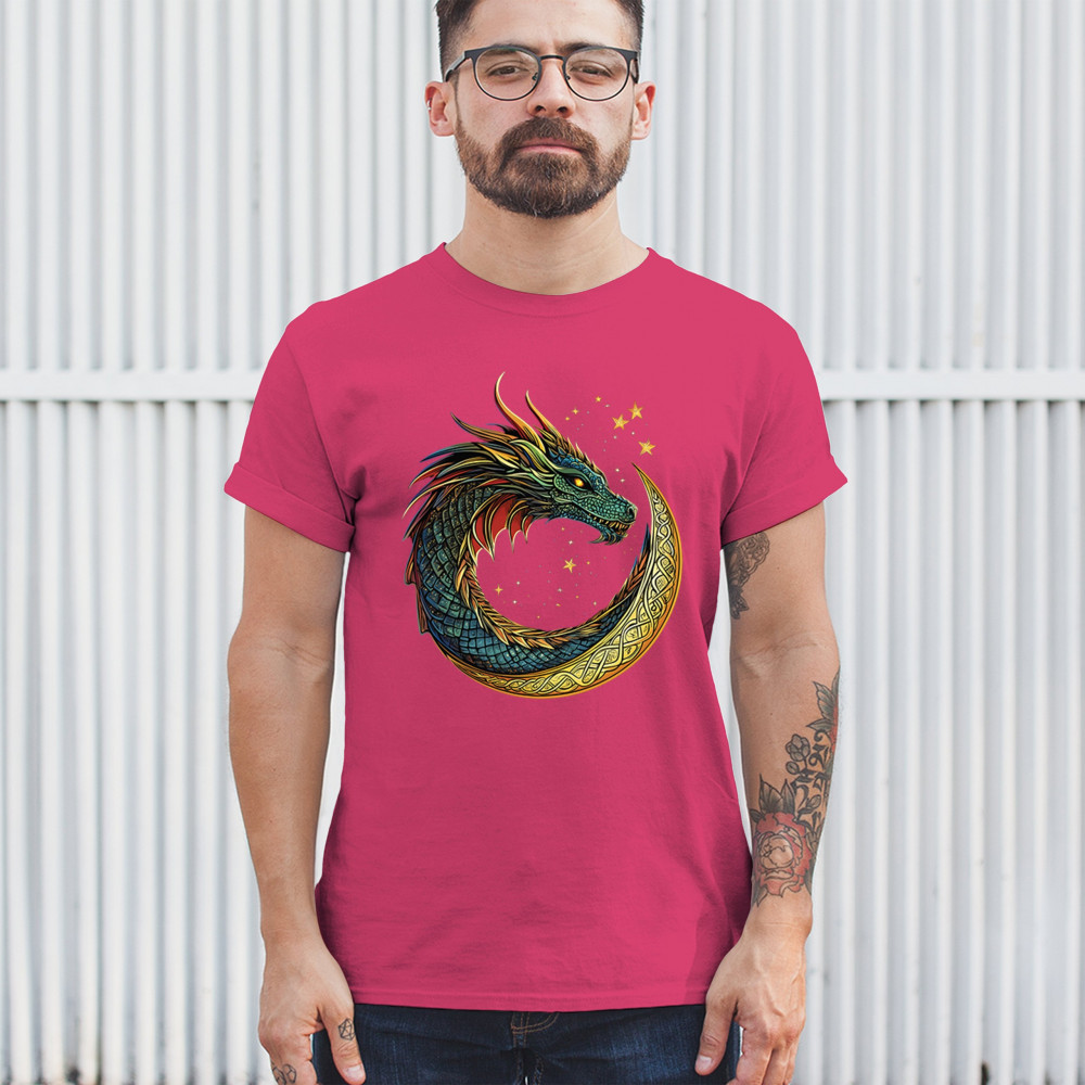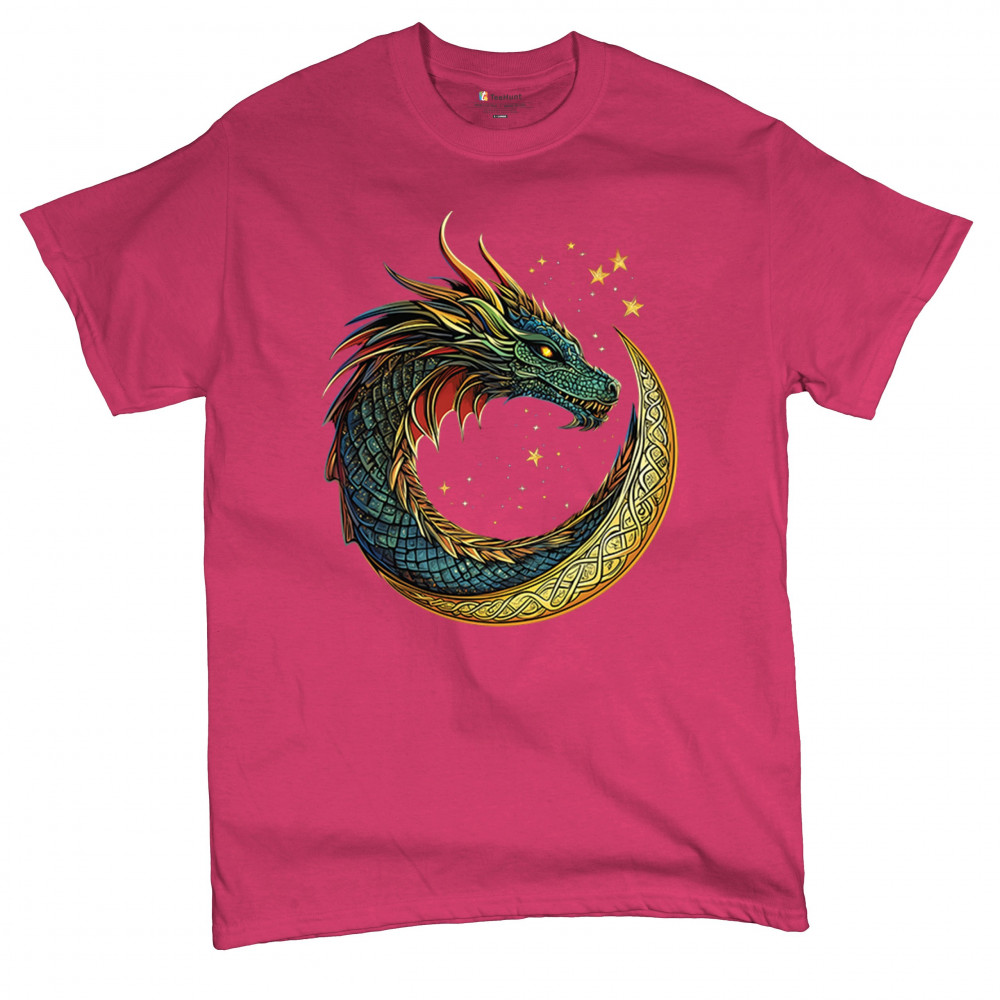 Unleash the spirit of transformation with this fierce dragon coiled inside a golden Celtic crescent moon. Its radiant scales and glowing eyes come to life against a starry, mystical sky. A symbol of fire energy, wisdom, and primal strength—perfect for gamers, fantasy enthusiasts, spiritual seekers, and legend lovers.