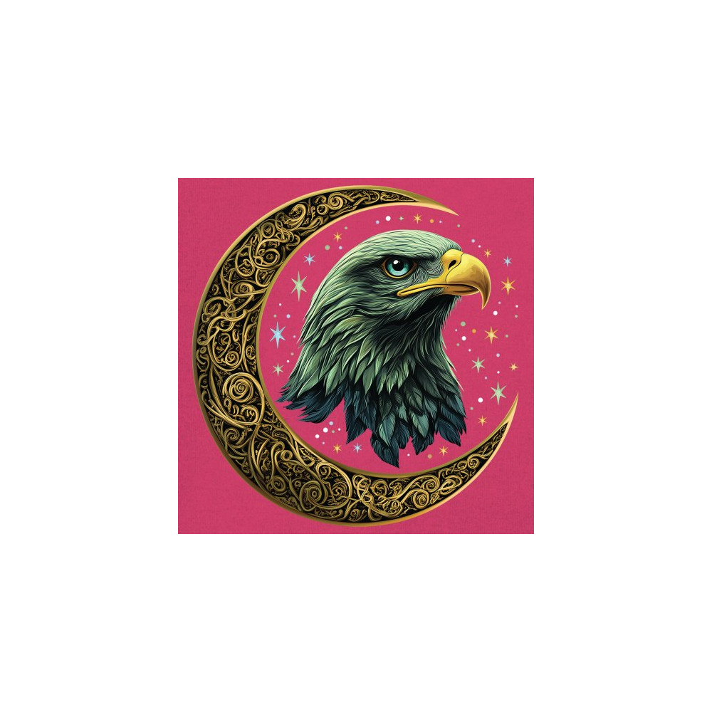 Majestic eagle in golden Celtic moon with stars—symbol of strength, vision, and freedom. Perfect for patriots, spiritual seekers, and nature lovers.