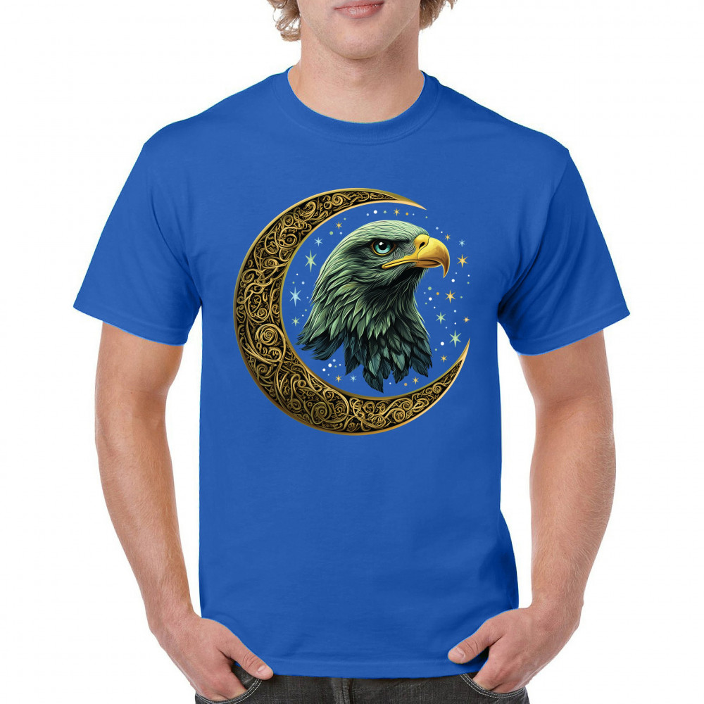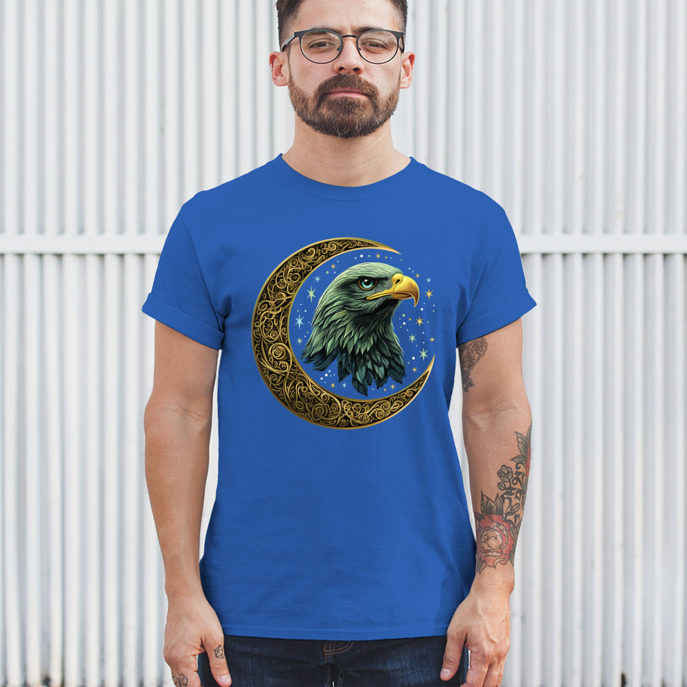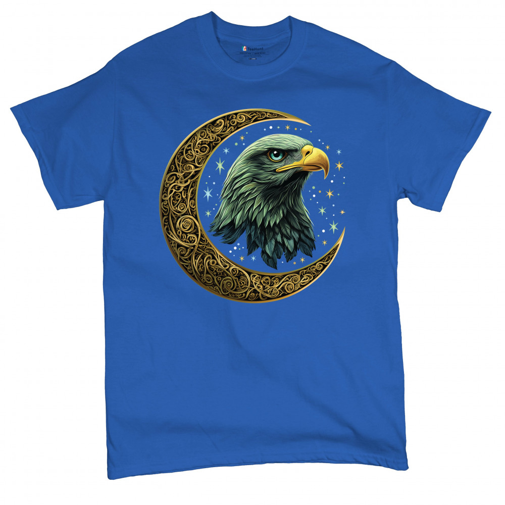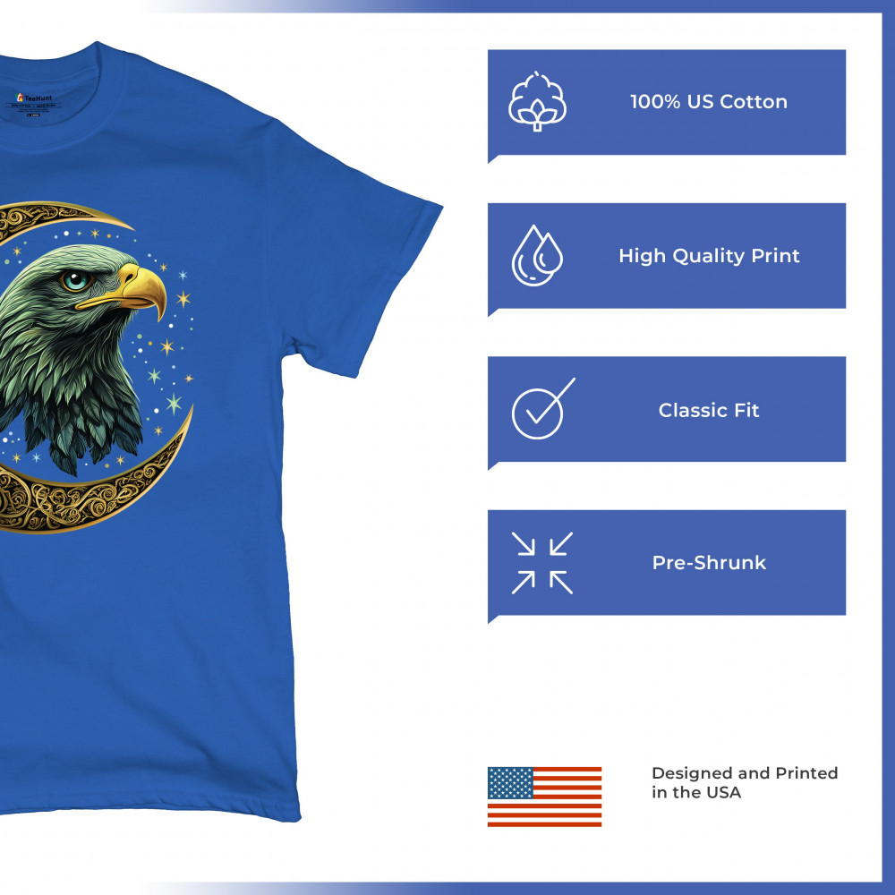 Majestic eagle in golden Celtic moon with stars—symbol of strength, vision, and freedom. Perfect for patriots, spiritual seekers, and nature lovers.