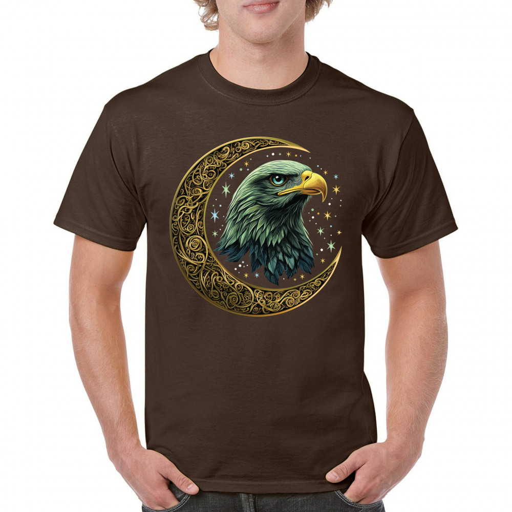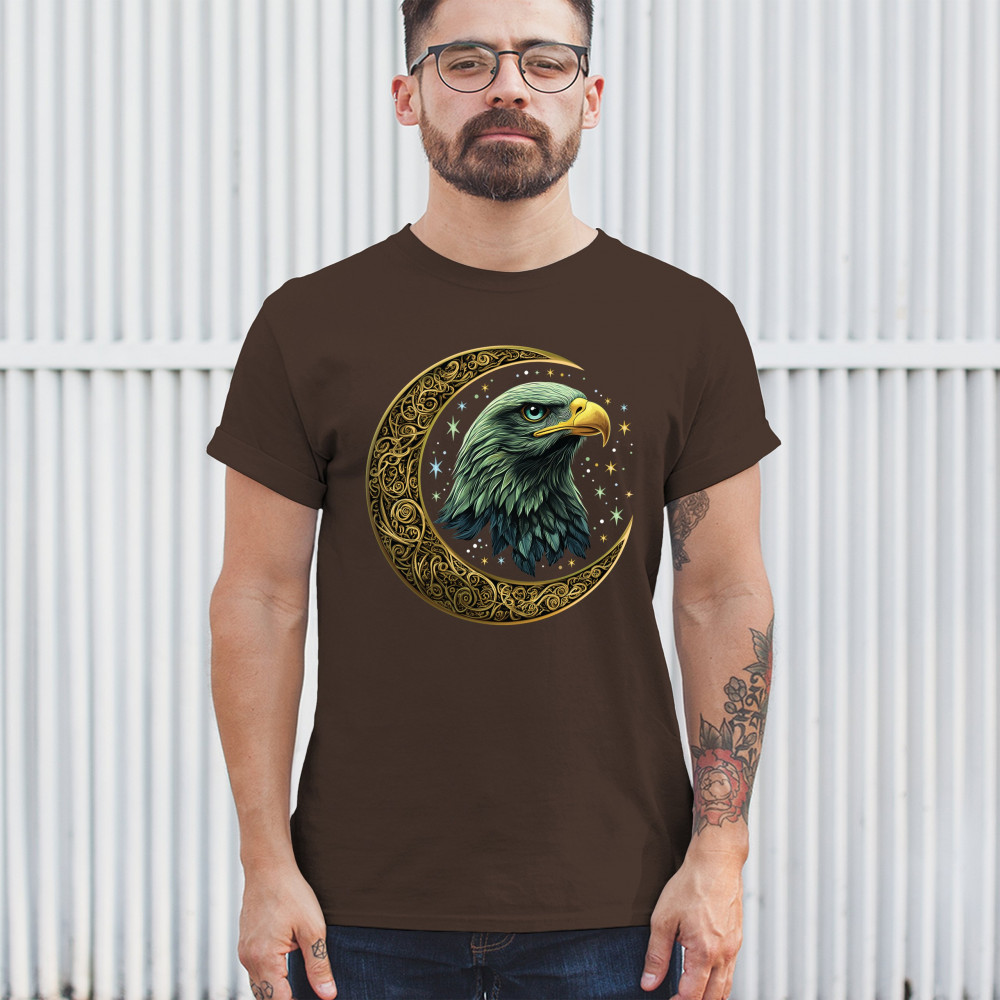 Majestic eagle in golden Celtic moon with stars—symbol of strength, vision, and freedom. Perfect for patriots, spiritual seekers, and nature lovers.