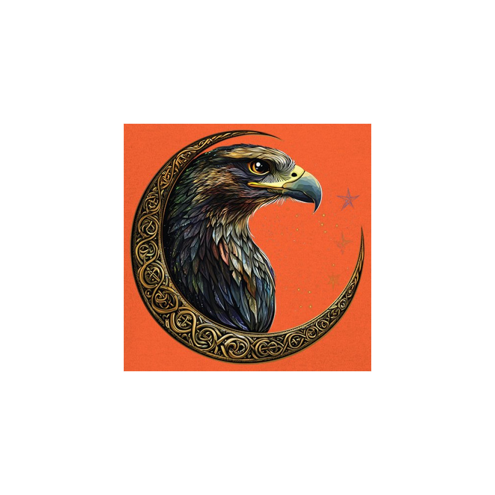 Vibrant eagle in Celtic moon with cosmic background. Represents freedom, vision, and spiritual strength—perfect for bird lovers and seekers.